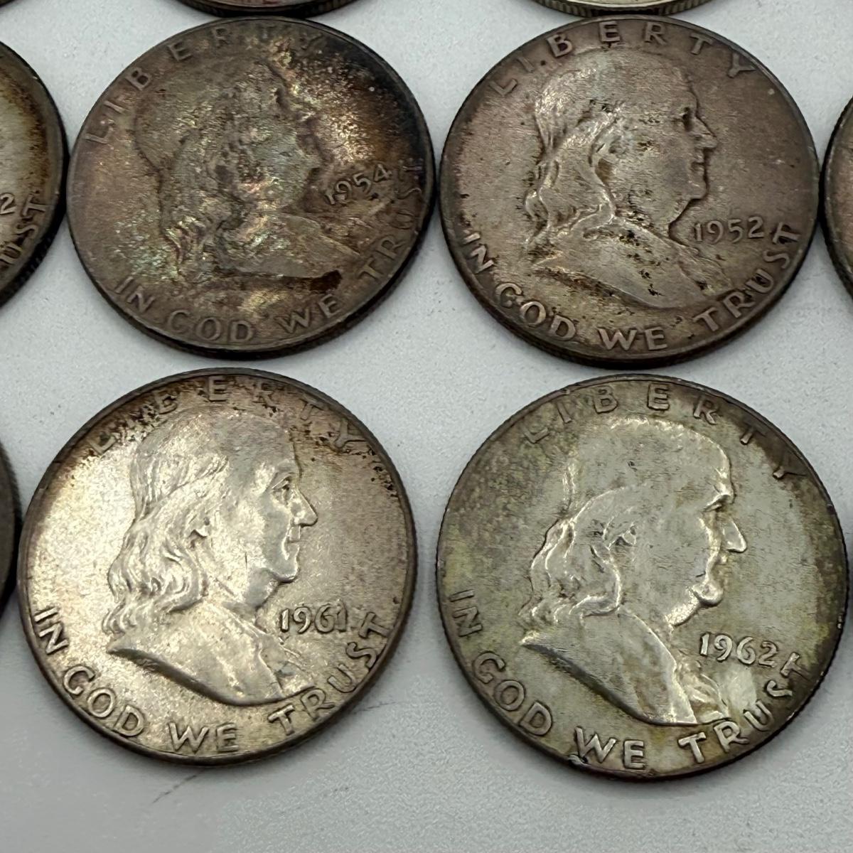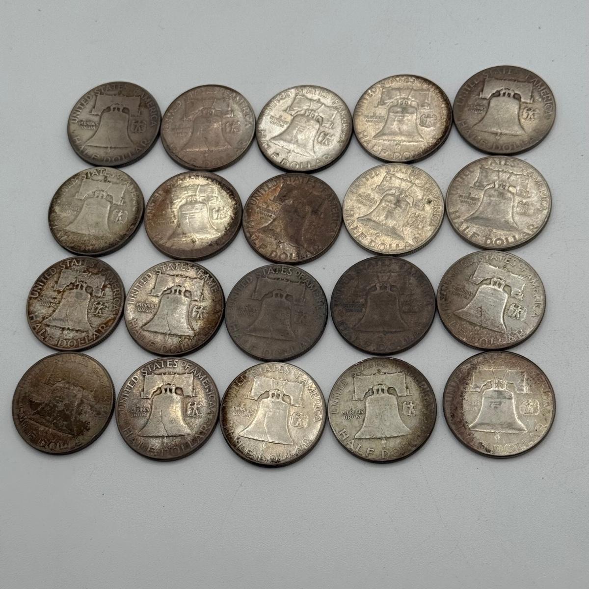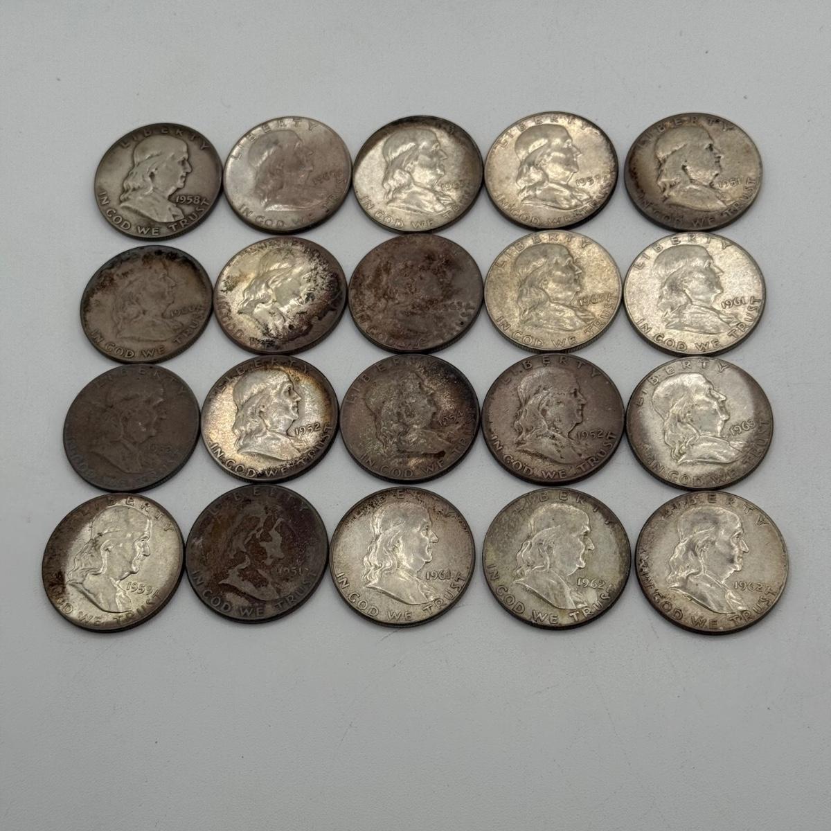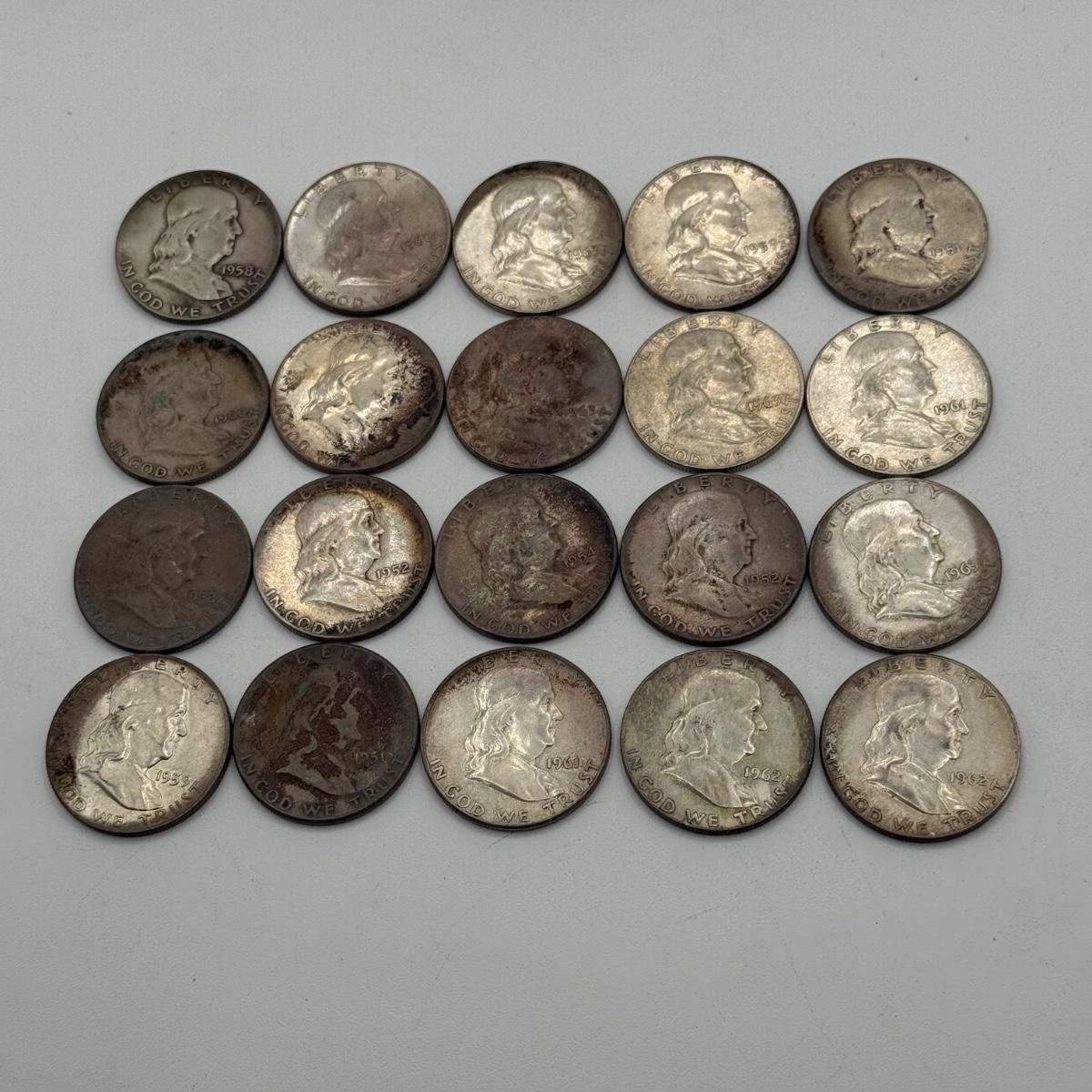 LOT 77: 20 Silver Benjamin Franklin Half Dollars