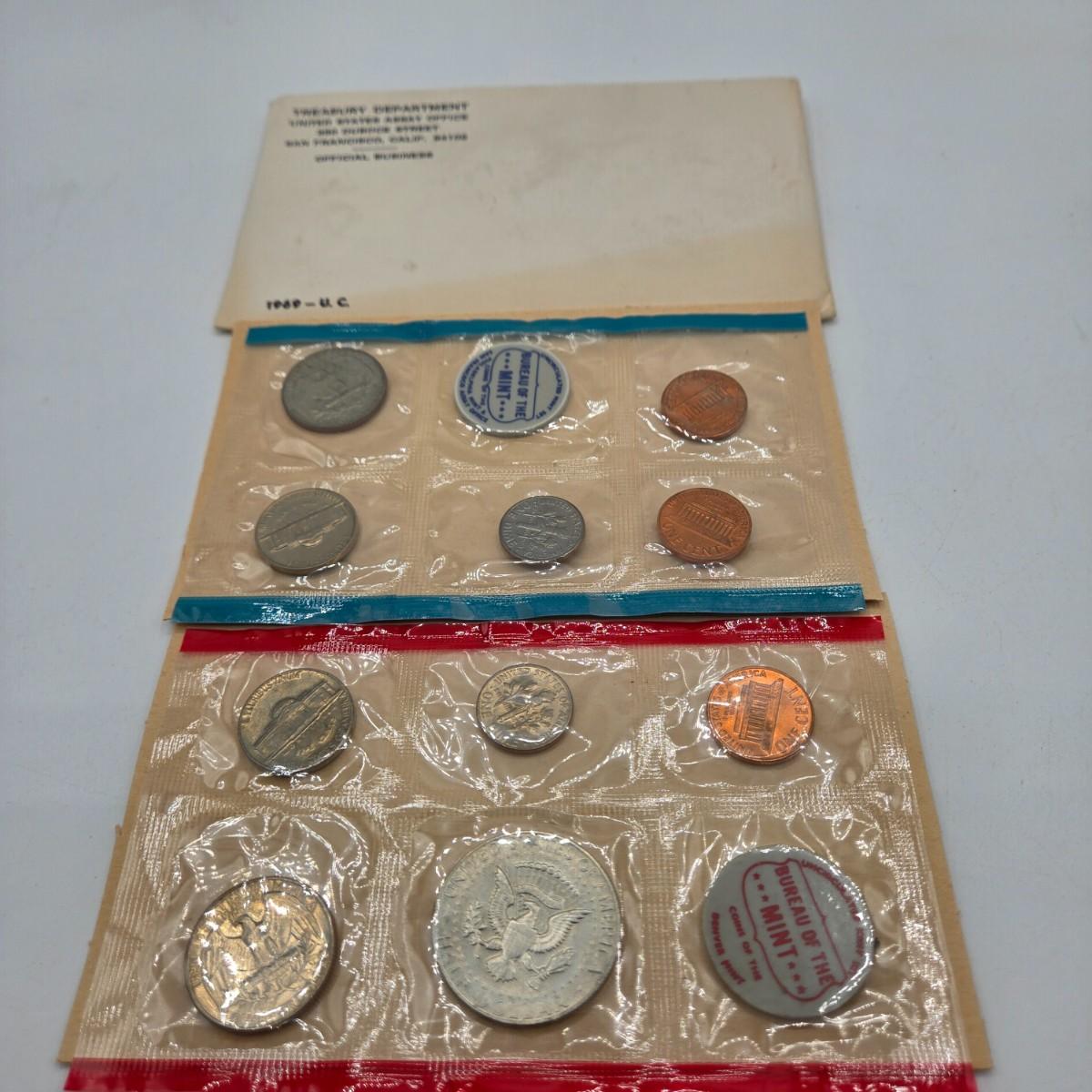 LOT 125: U.S. Mint Uncirculated Coin Sets from 1968, 1969, & 1972 and Special Mint Set from 1965
