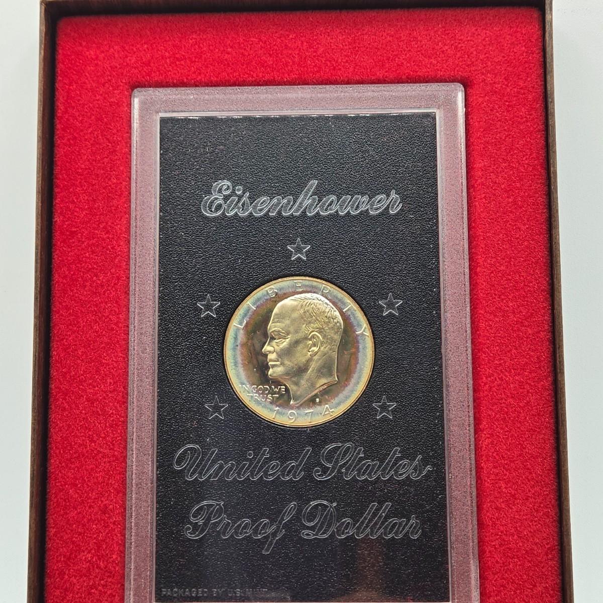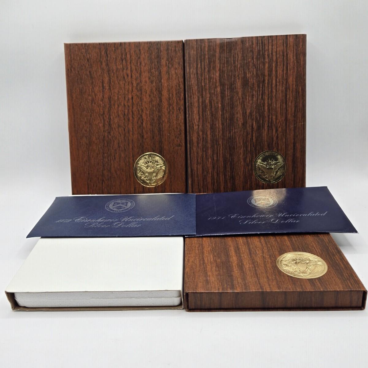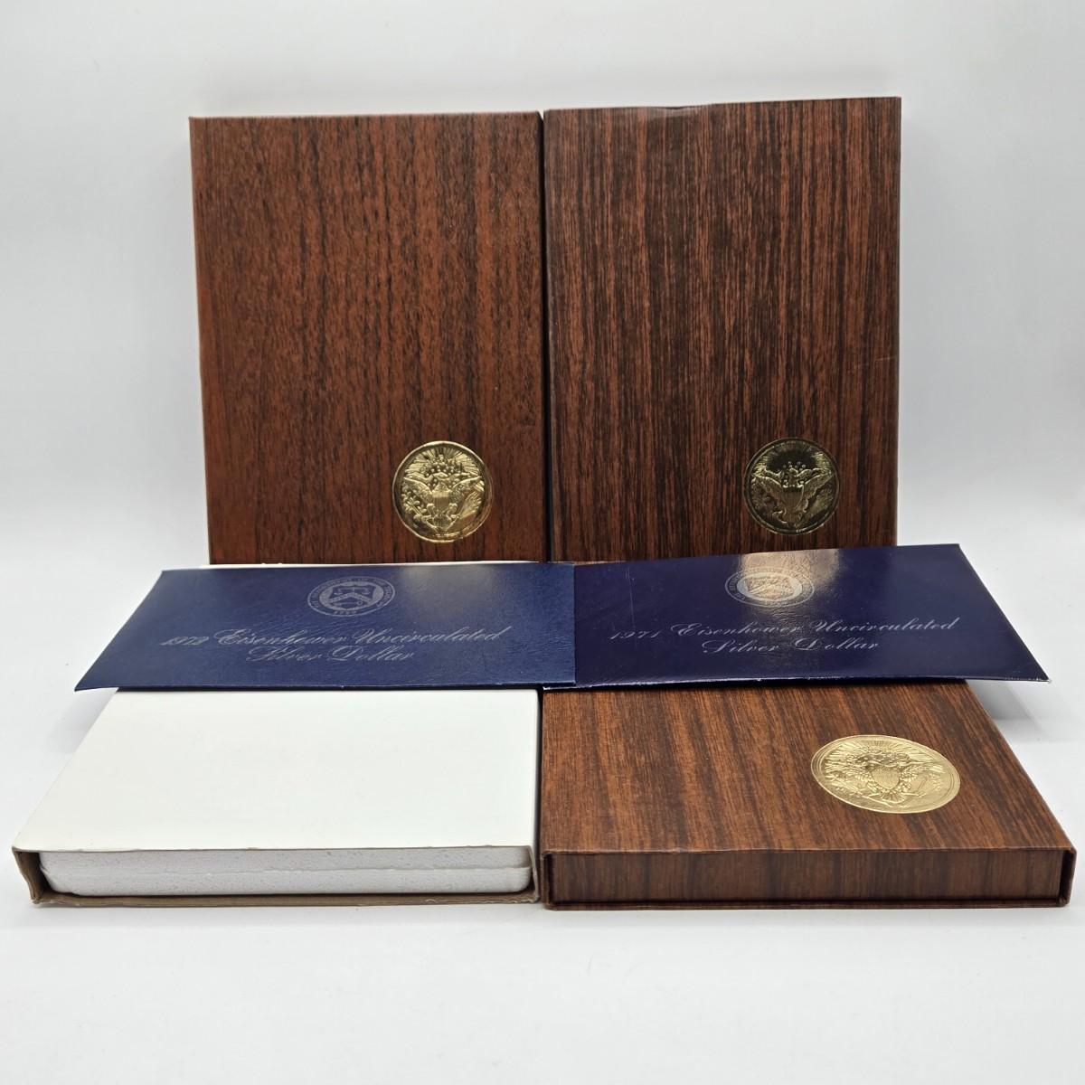 LOT 130: 1971 Eisenhower Silver Proof Dollar, 1972 & 1974 Eisenhower Proof Dollars, 1976 Bicentennial Silver Proof Set, and 1971 & 1972 Uncirculated 40% Silver Eisenhower Dollar Coins,