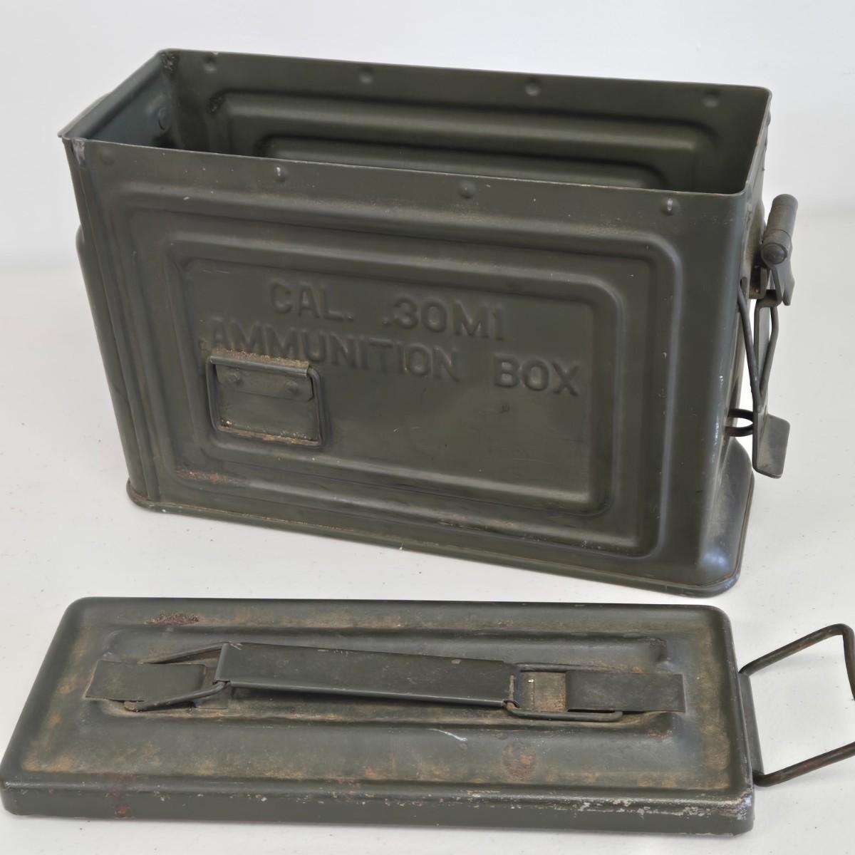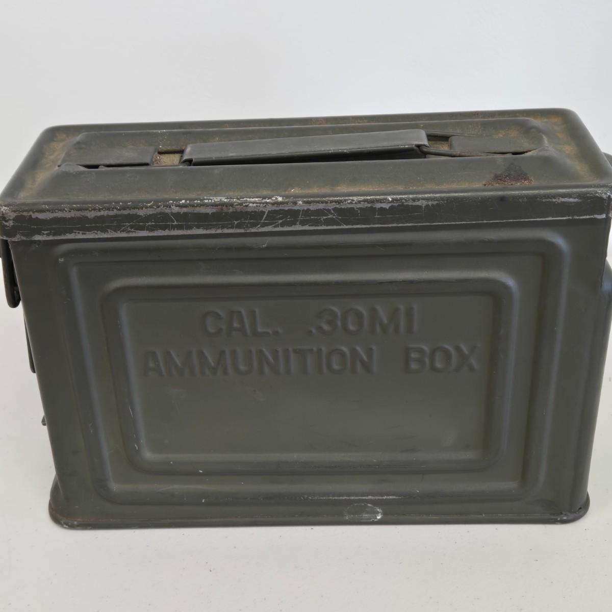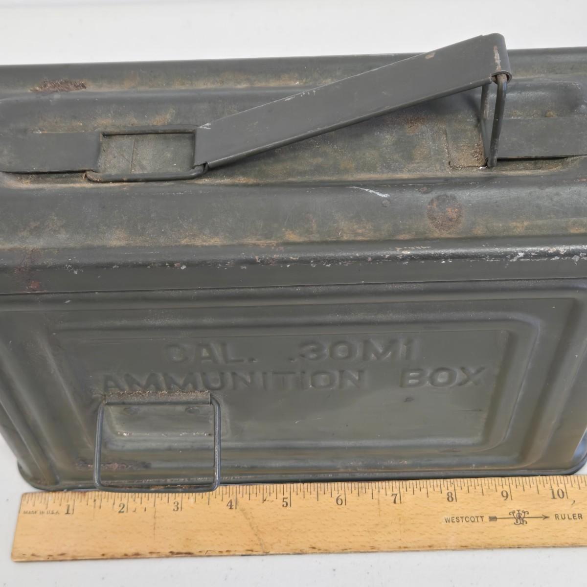 LOT Vintage Metal Box, U.S. Military Ammunition Box, and U.S. Army M1 .30 Caliber Ammunition Box