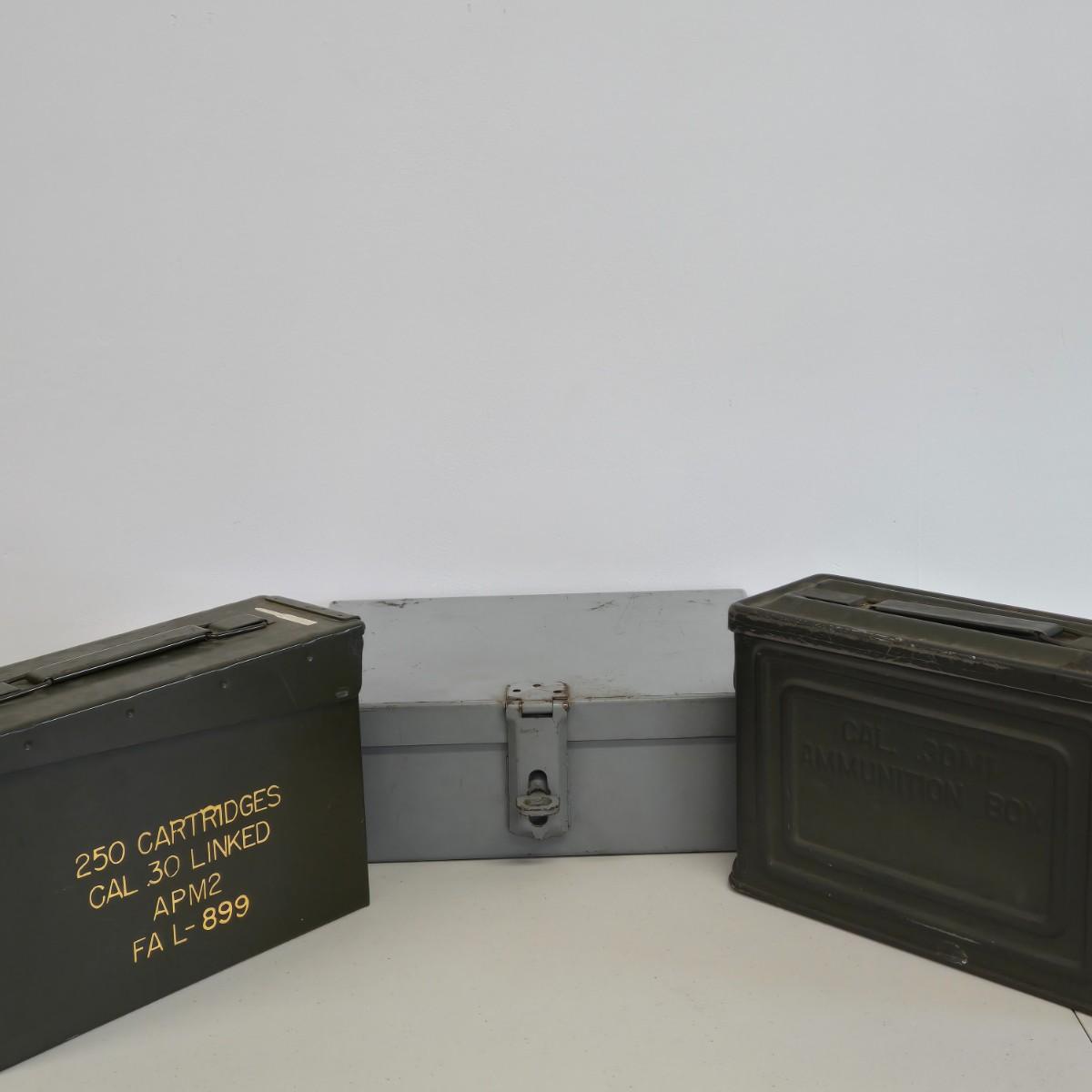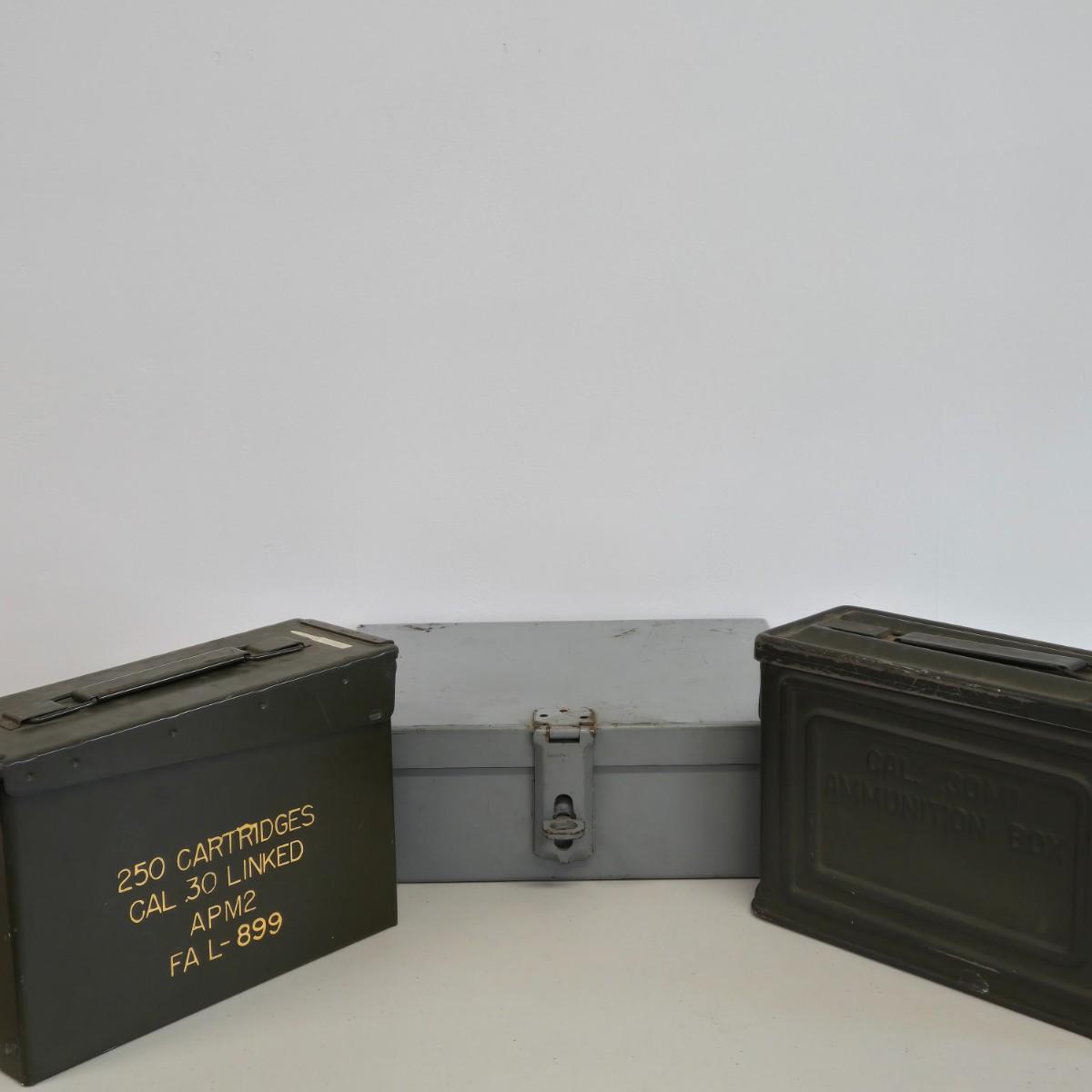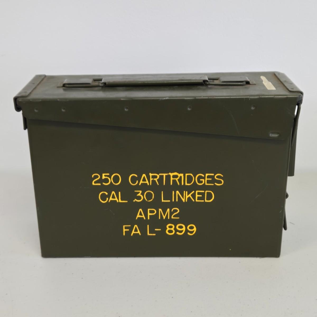 LOT Vintage Metal Box, U.S. Military Ammunition Box, and U.S. Army M1 .30 Caliber Ammunition Box