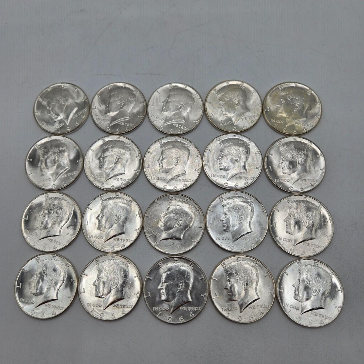 LOT 133: Twenty 1964 90% Silver Kennedy Half Dollars