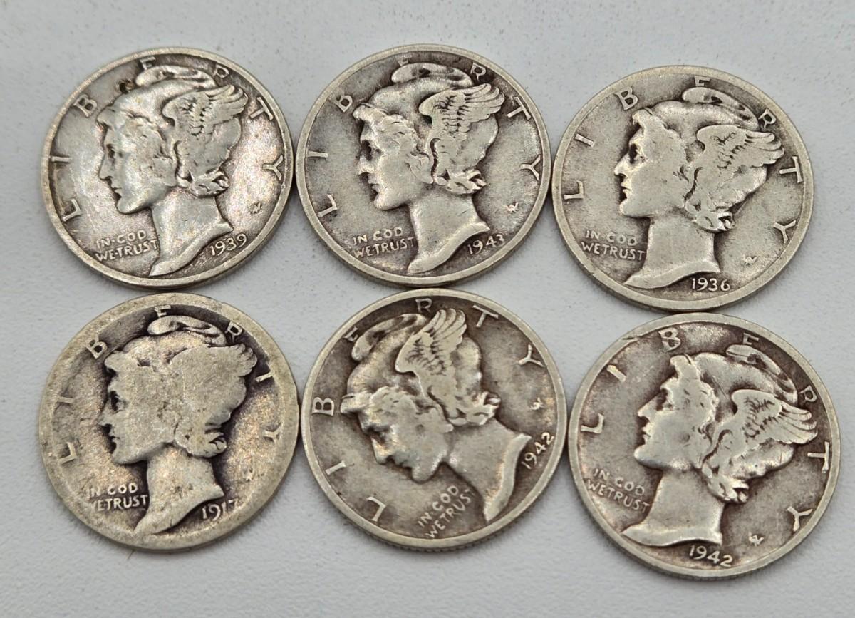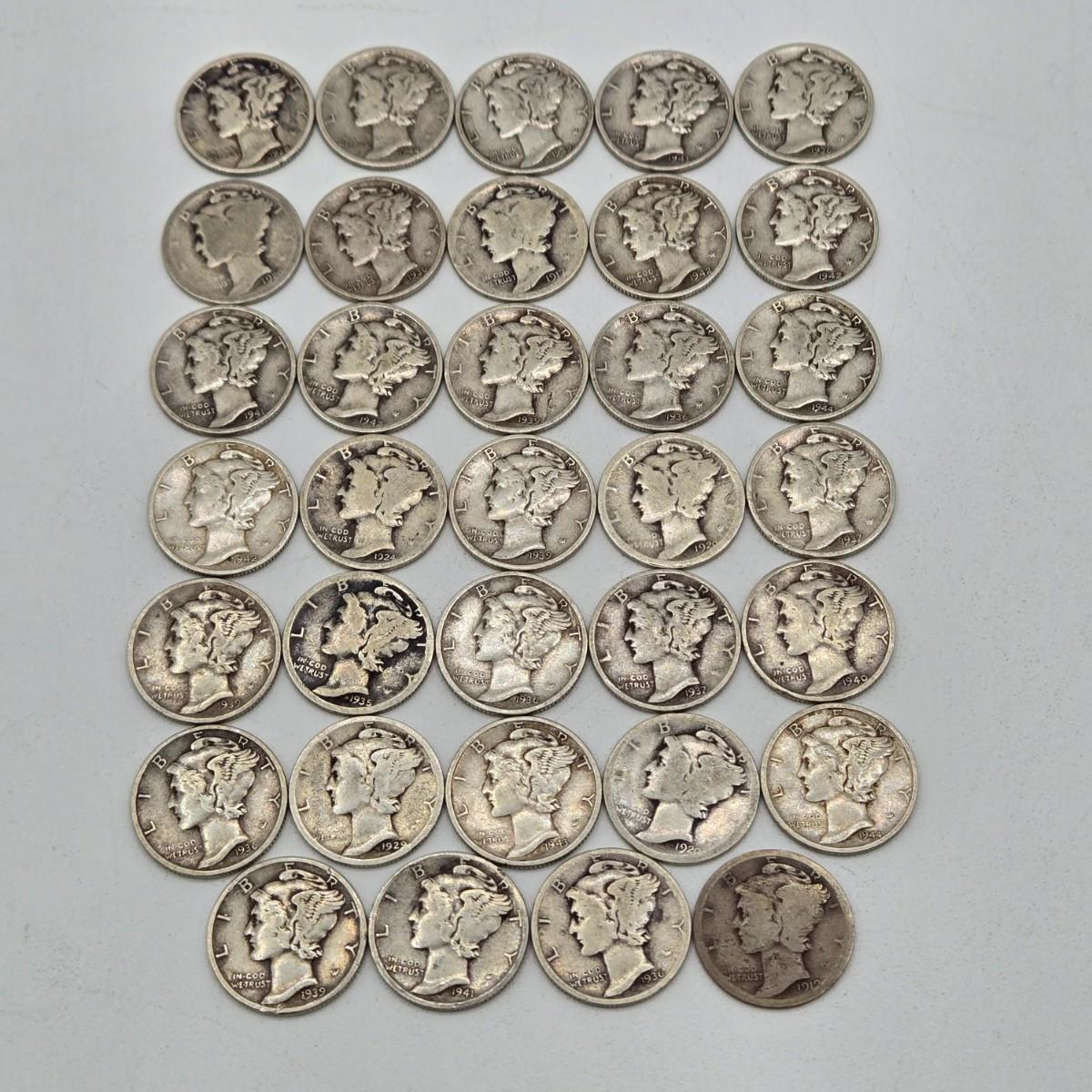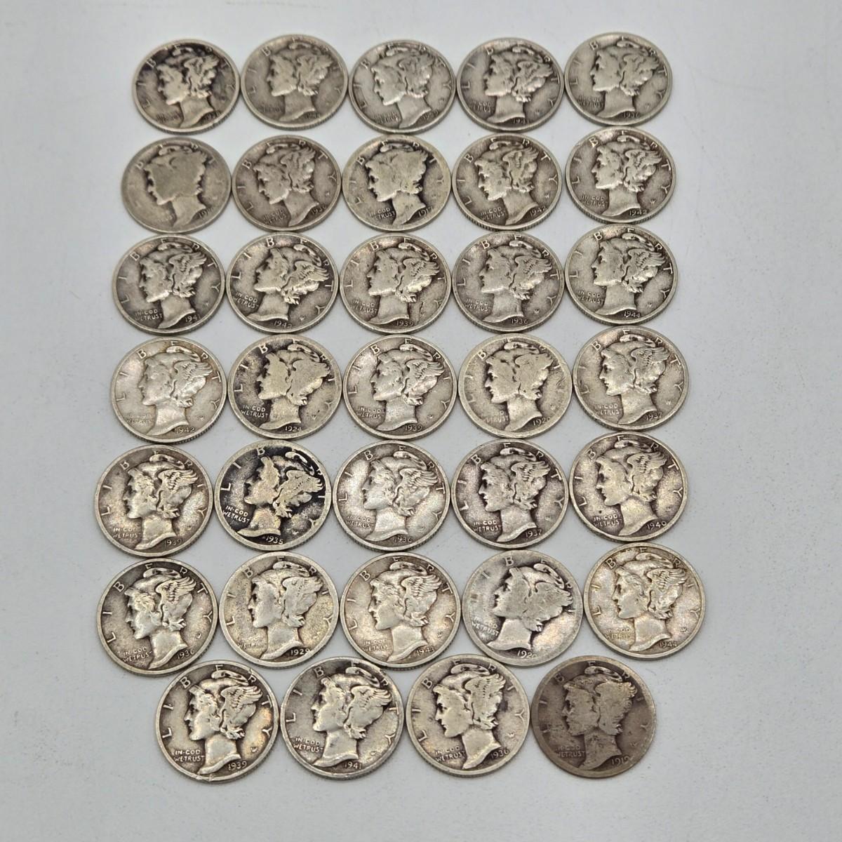 LOT 139: Thirty-Four 90% Silver Mercury Dimes