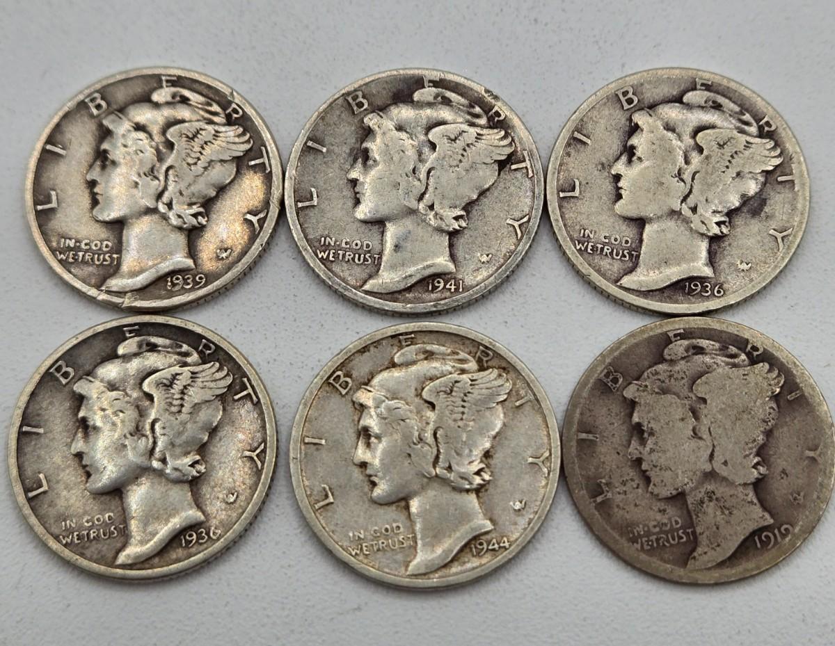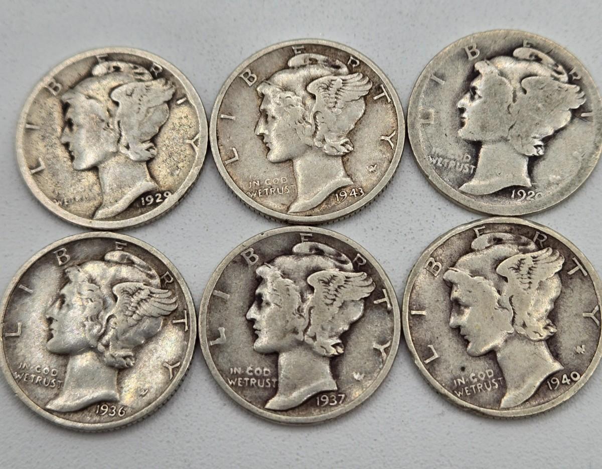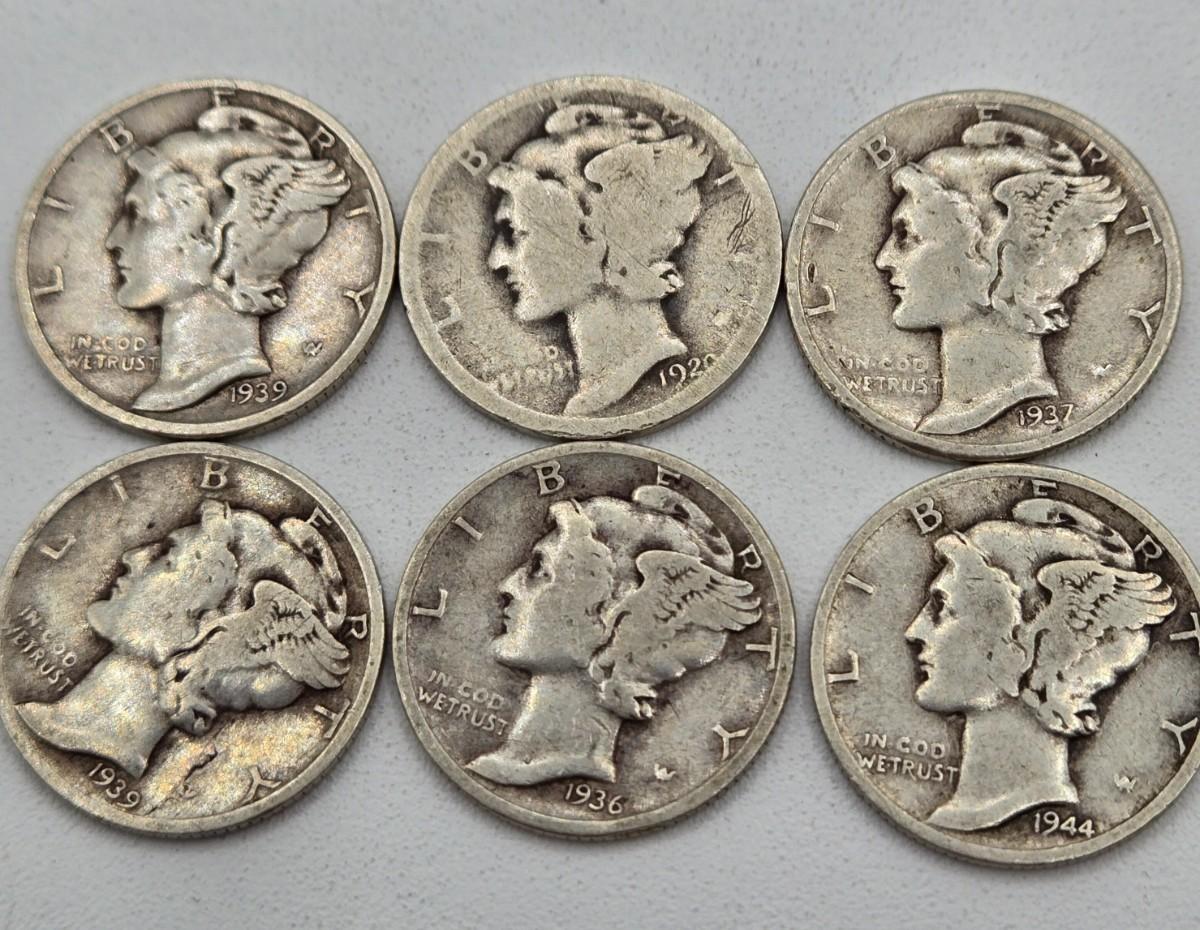 LOT 139: Thirty-Four 90% Silver Mercury Dimes