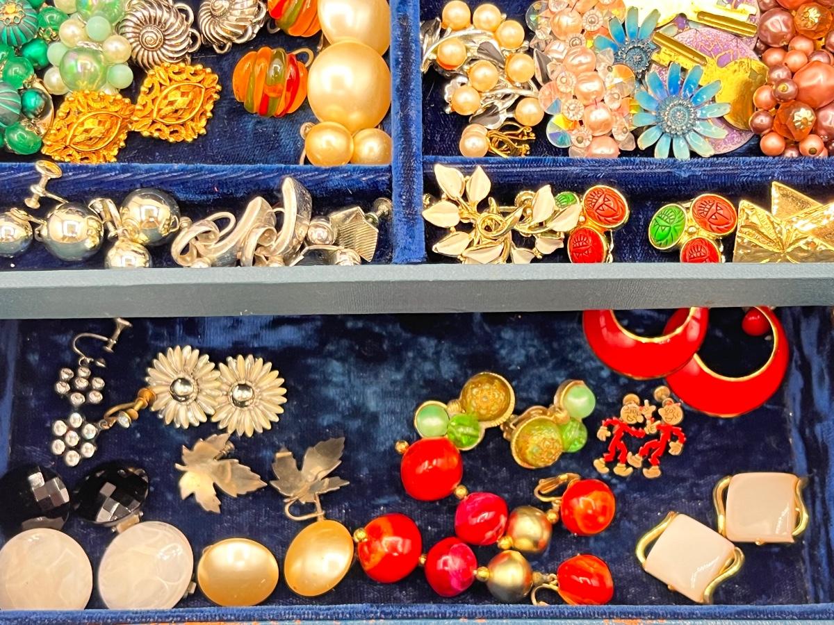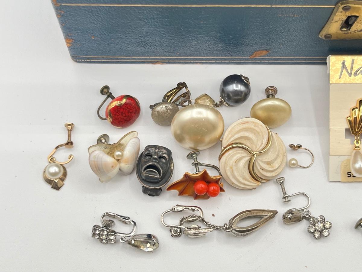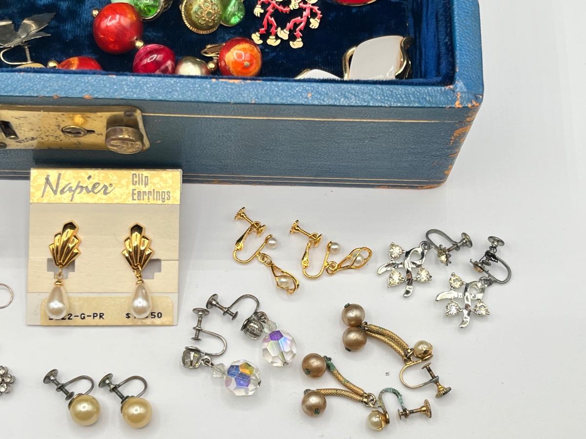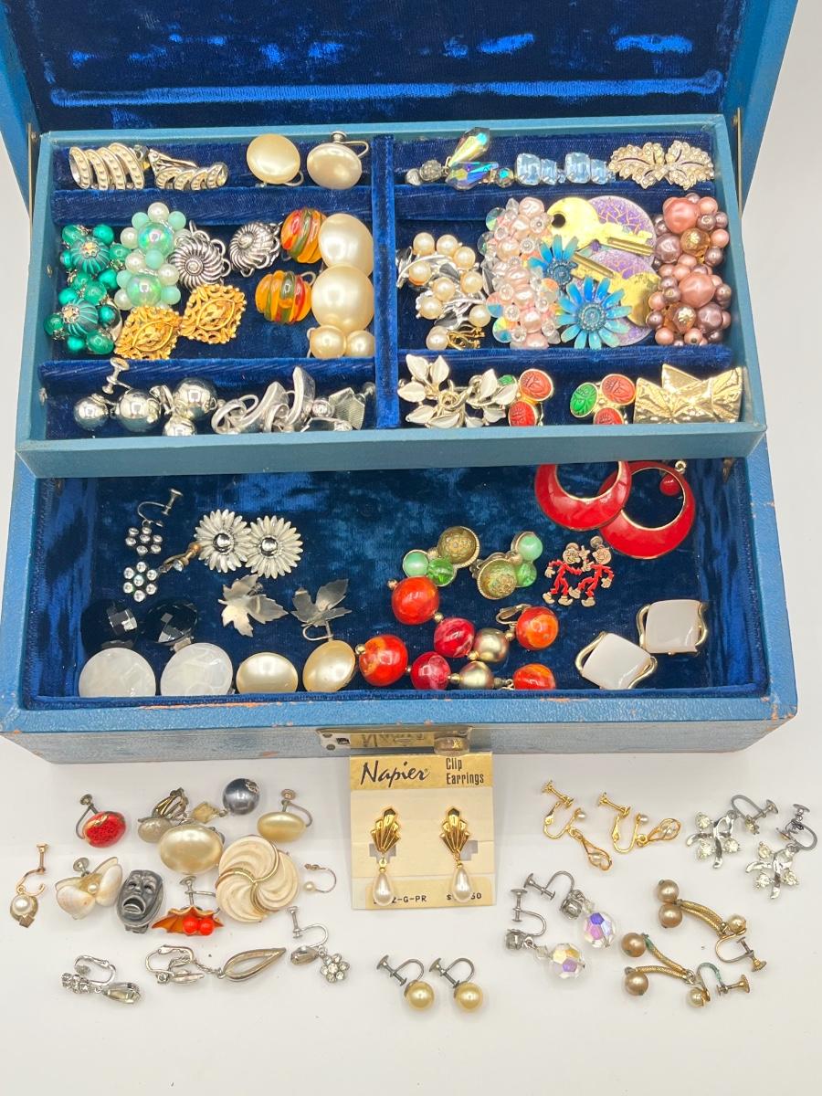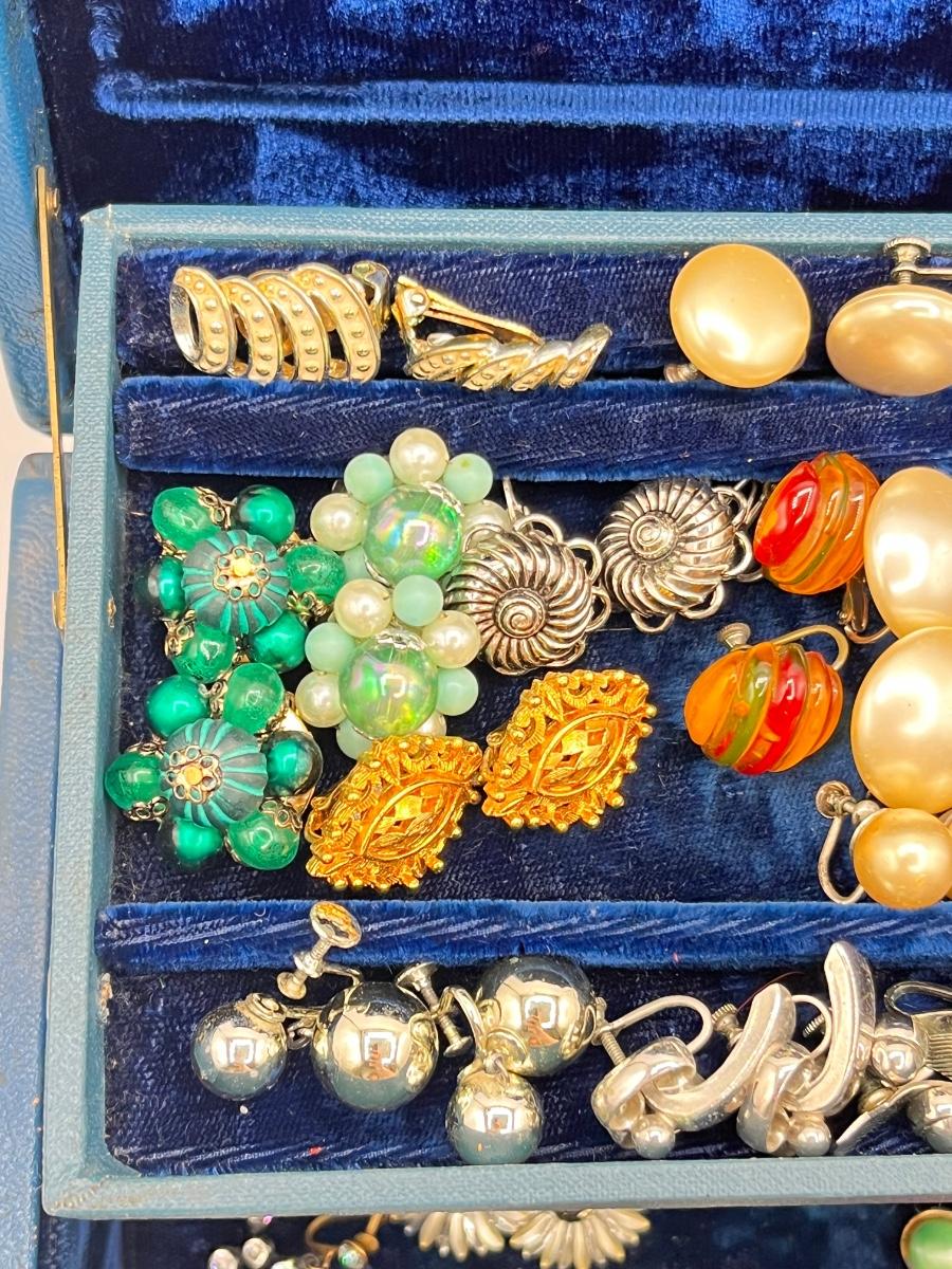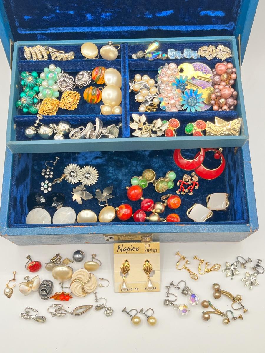 LOT 115: Bold and Colorful Earring Collection with Pretty Blue Lined Box...Mix of Screwback and Clip Ons