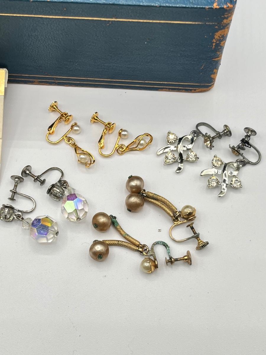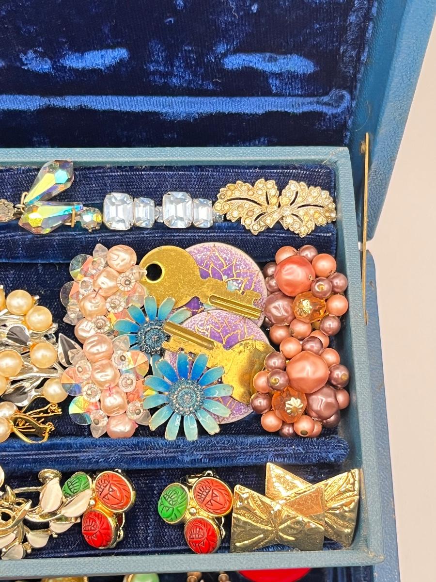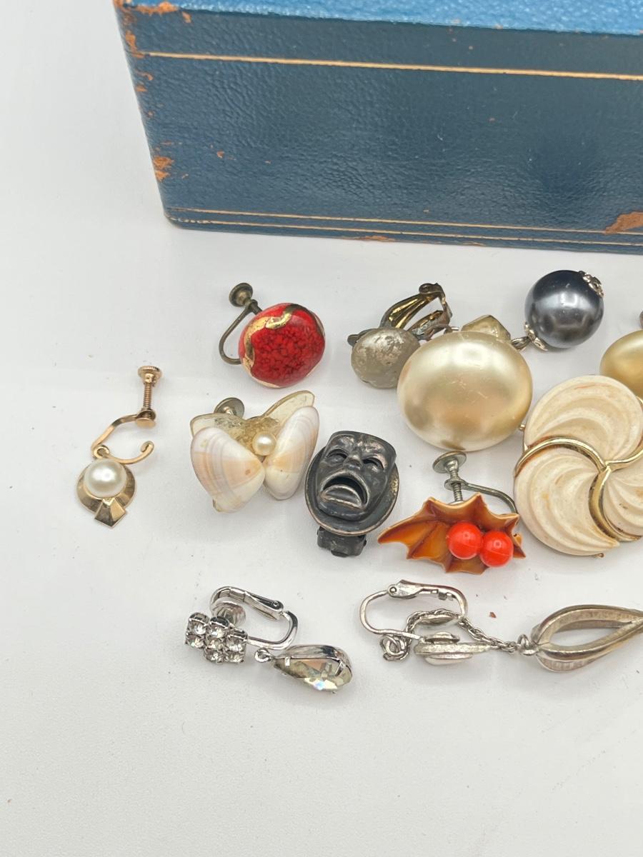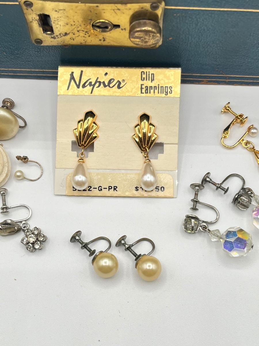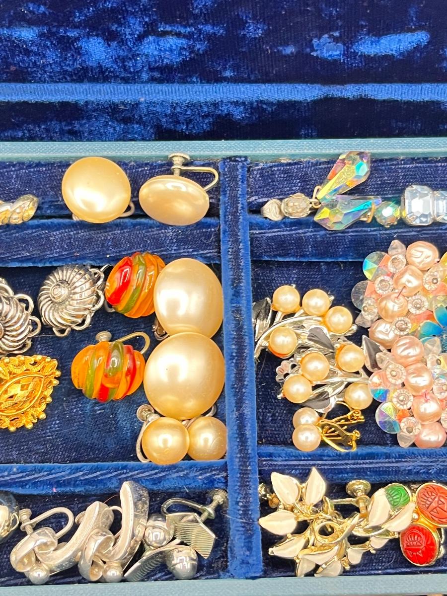 LOT 115: Bold and Colorful Earring Collection with Pretty Blue Lined Box...Mix of Screwback and Clip Ons
