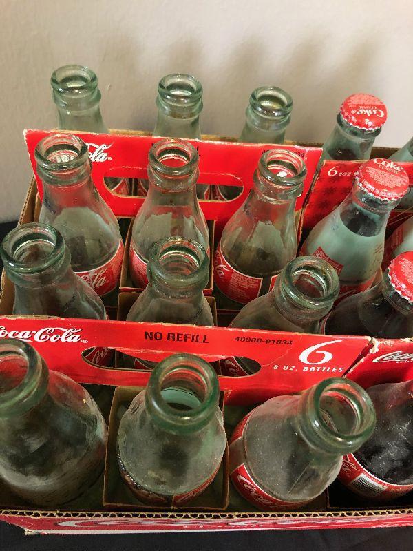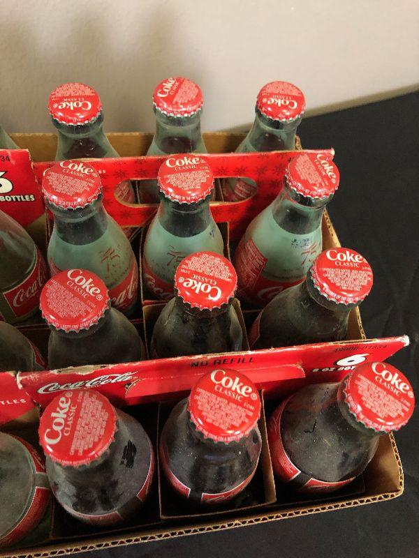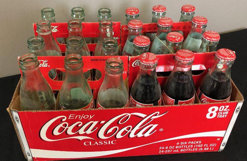 Lot # 115 4 six-packs of 8 ounce Coke Bottles 2 are full unopened