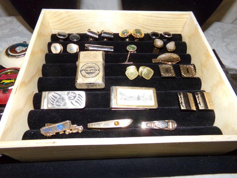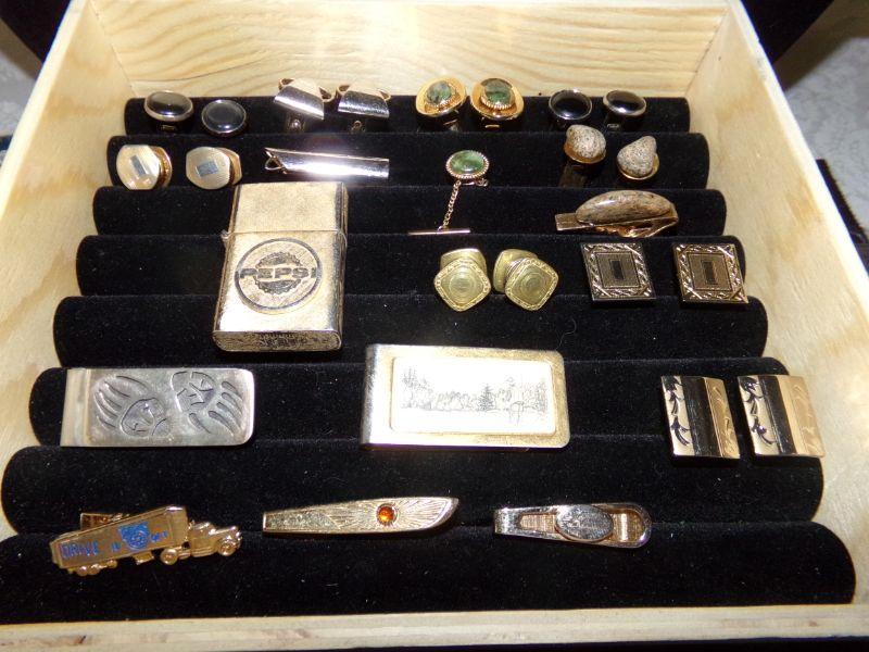 CUFFLINKS, TIE TACKS, PEPSI LIGHTER BY FLORENTINE,2 MONEY CLIPS, BELT BUCKLE AND MORE