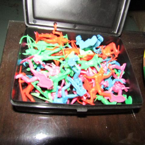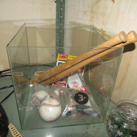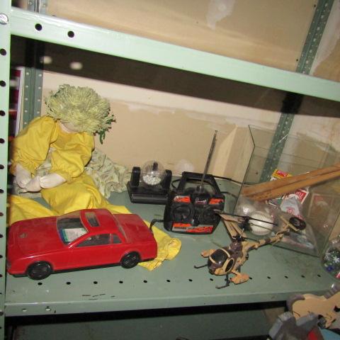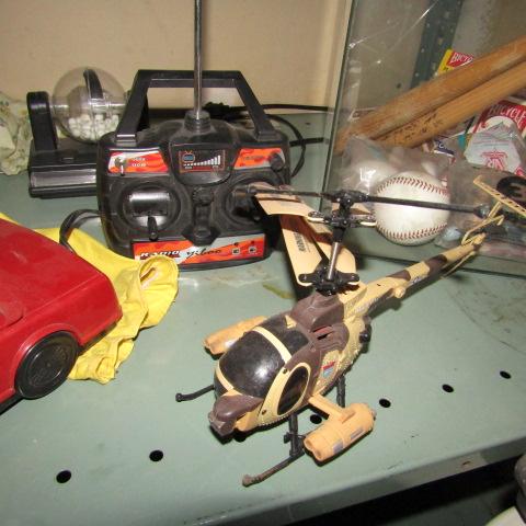 SMALL PLASTIC FIGURES, RADIO CONTROLLED CAR/HELICOPTER, 2 SMALL BASEBALL BATS, BASEBALLS AND A DOLL