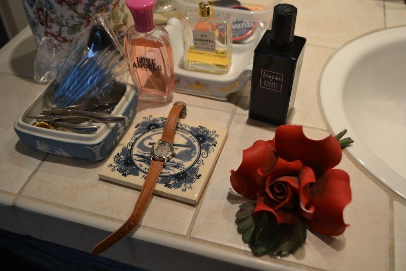 LOT 115 GLASS MINI LAMP, WATCH, MISC