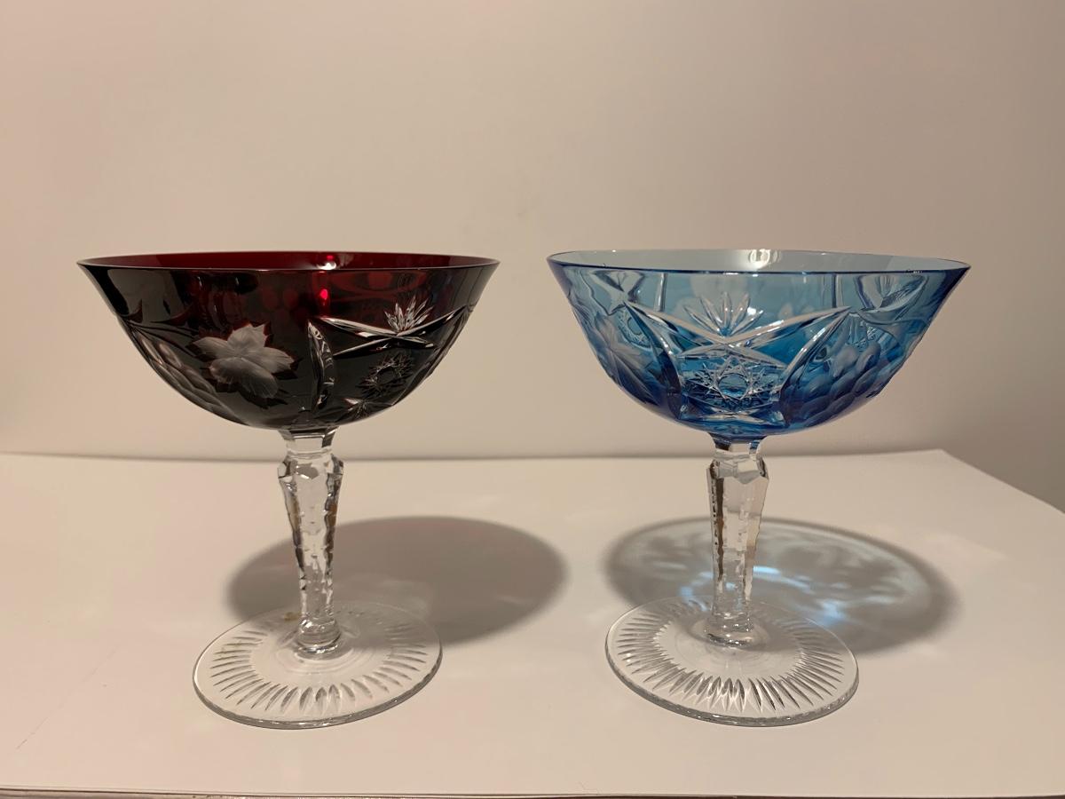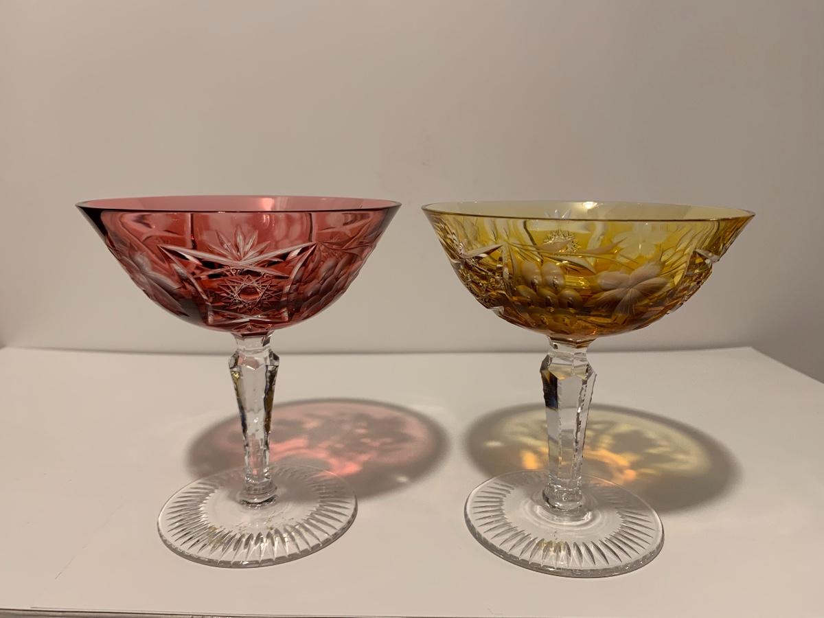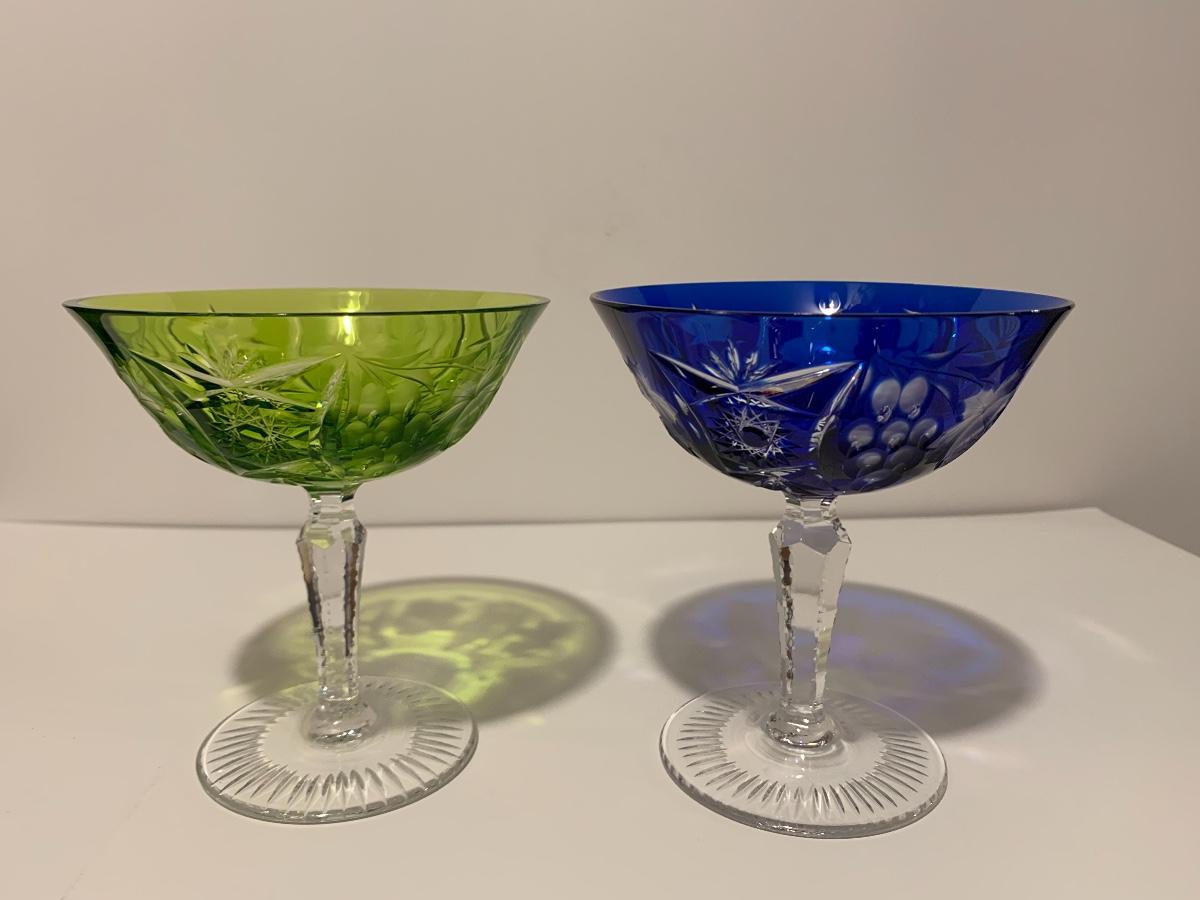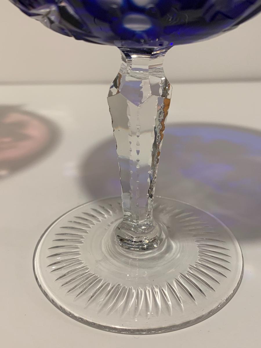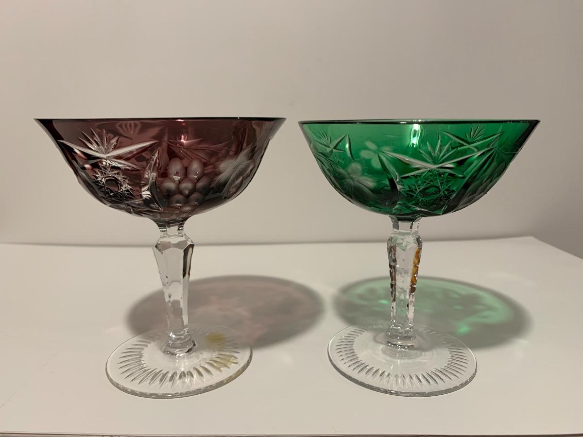 Beautiful set of 8 multicolored cut to clear glassware with notched stems from Germany Just stunning. They have had minimal use if any. The crystal is nice and clear without any residue.