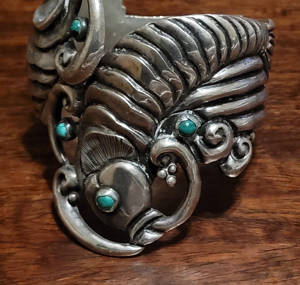 Lot 115: Vintage Mid Century Mexican Large Sterling & Turquoise Clamper Cuff