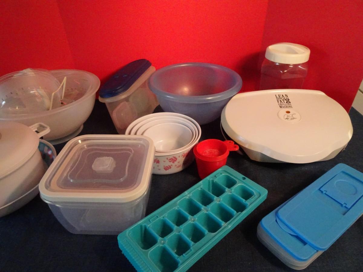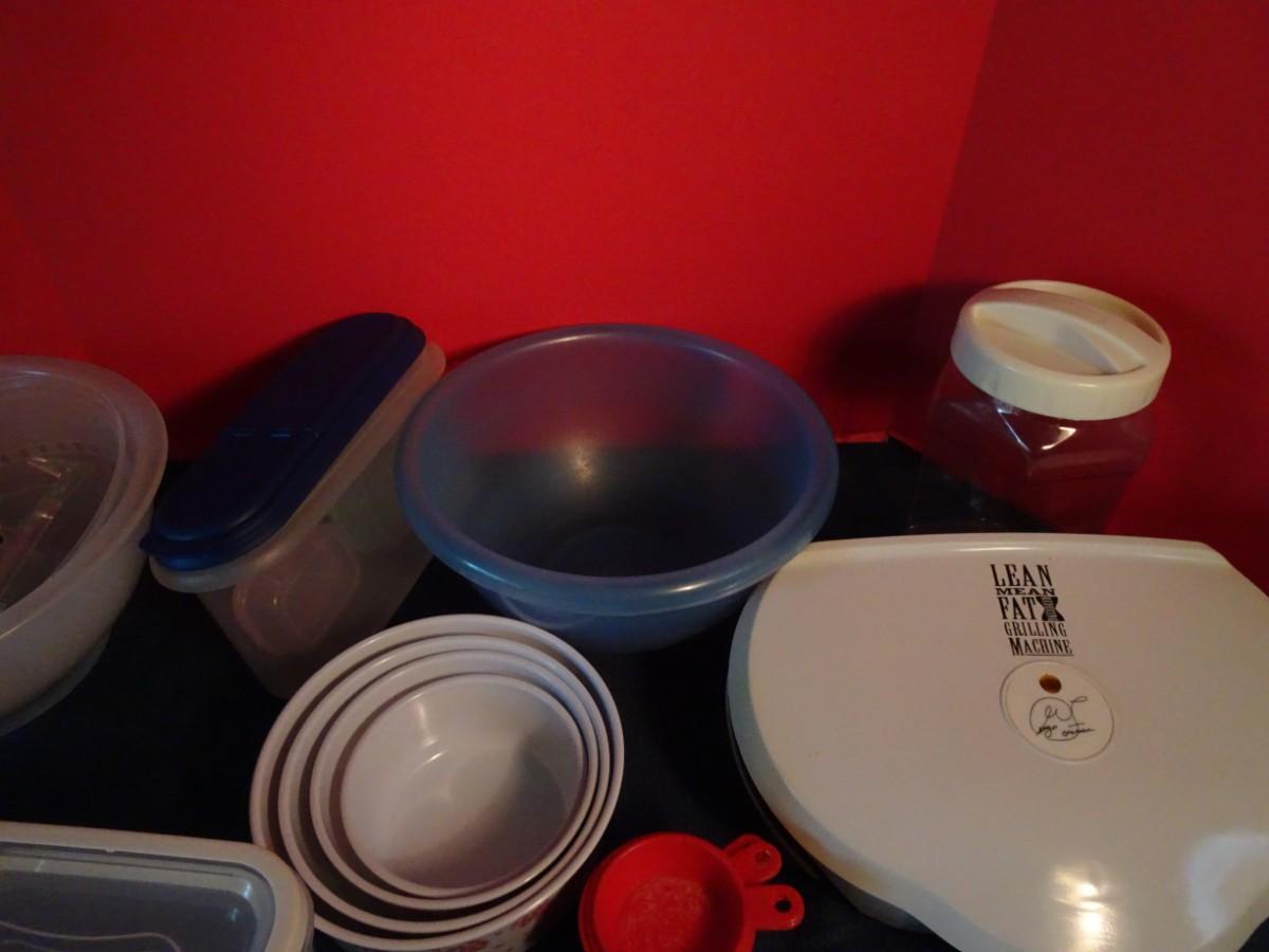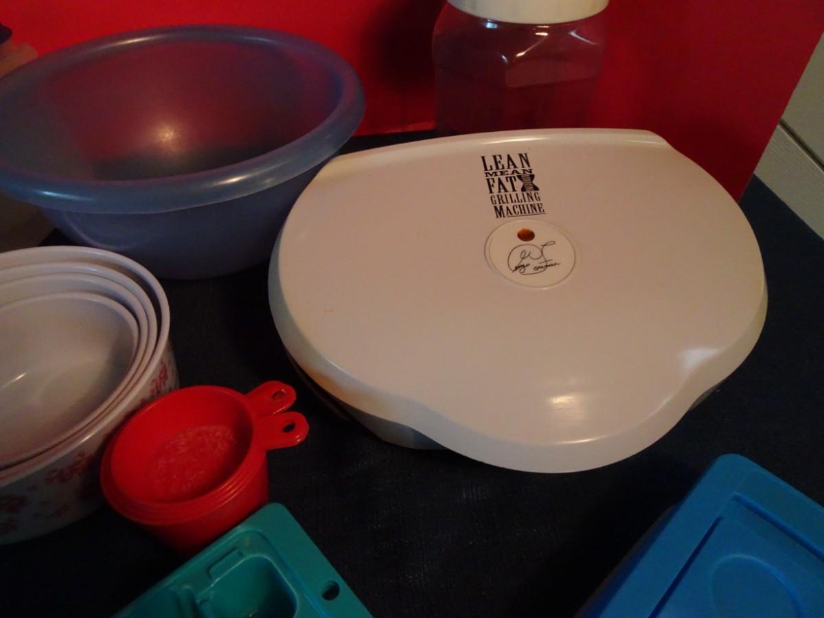 LOT 115. PLASTIC KITCHEN ITEMS AND GEORGE FOREMAN GRILL