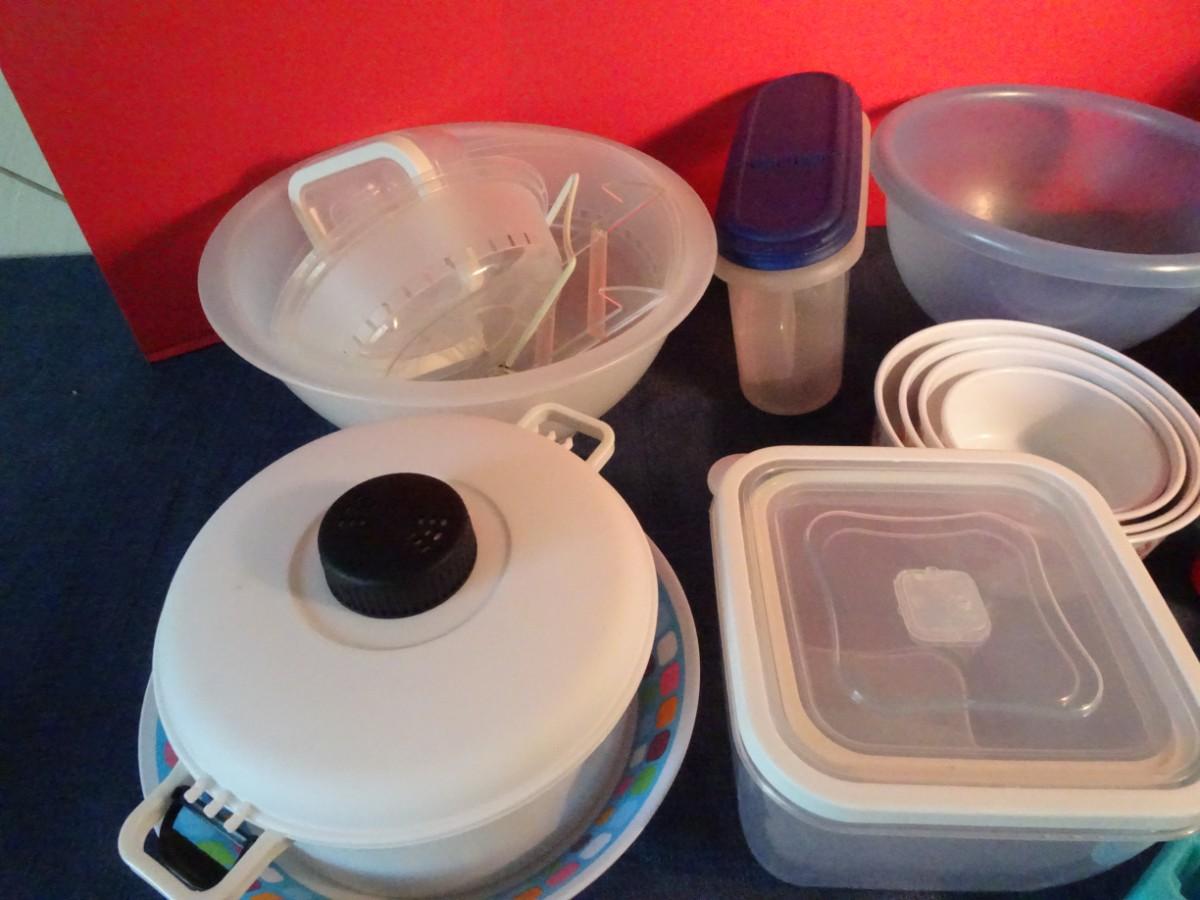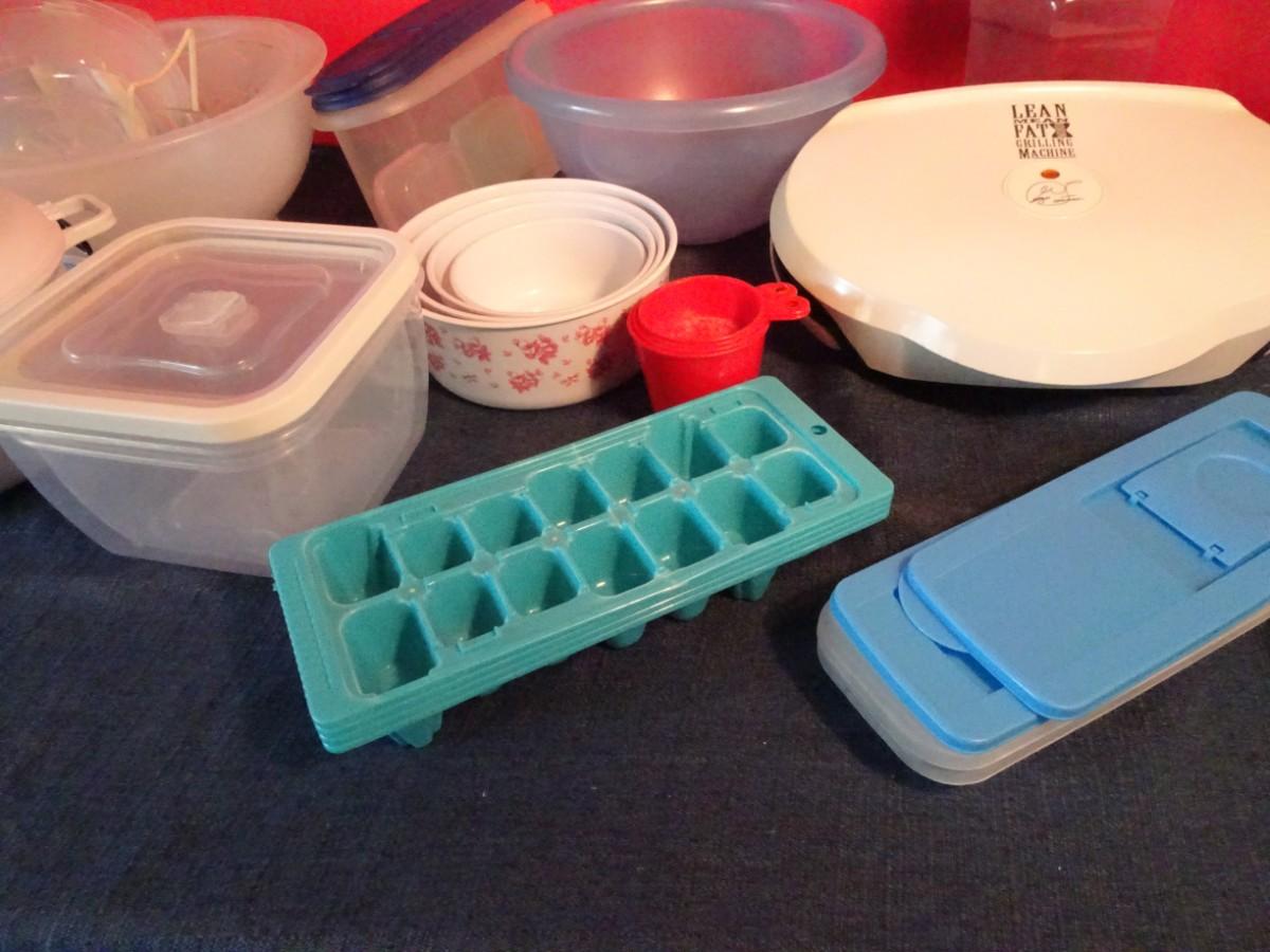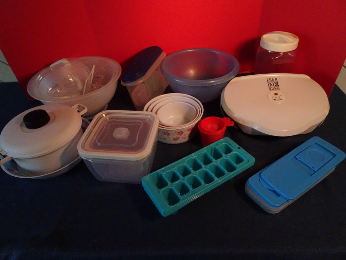 LOT 115. PLASTIC KITCHEN ITEMS AND GEORGE FOREMAN GRILL