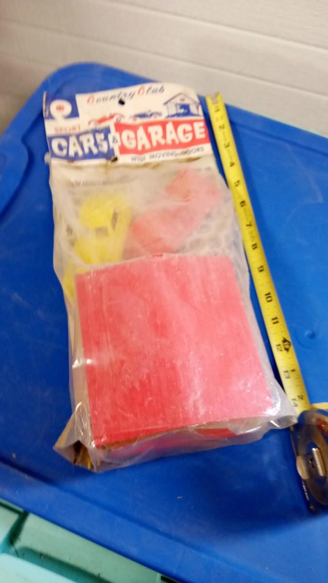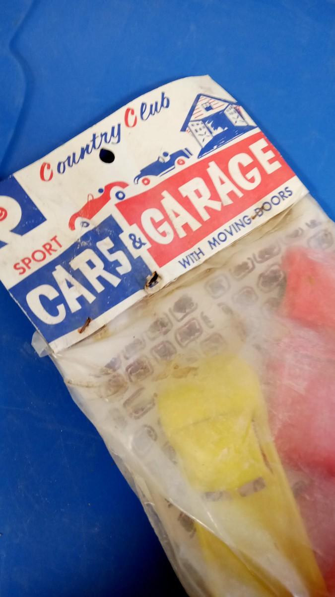 LOT 115   VINTAGE PLASTIC TOY CARS AND GARAGE