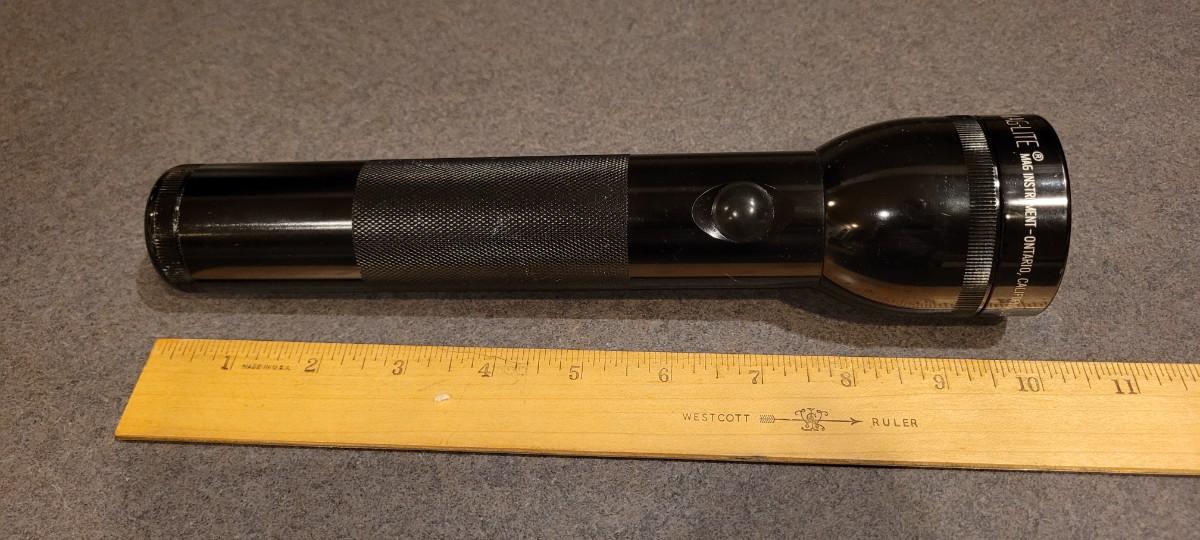 Nice looking 10" Black MAG LITE Flashlight that can act as a security baton should the need require. Works great.