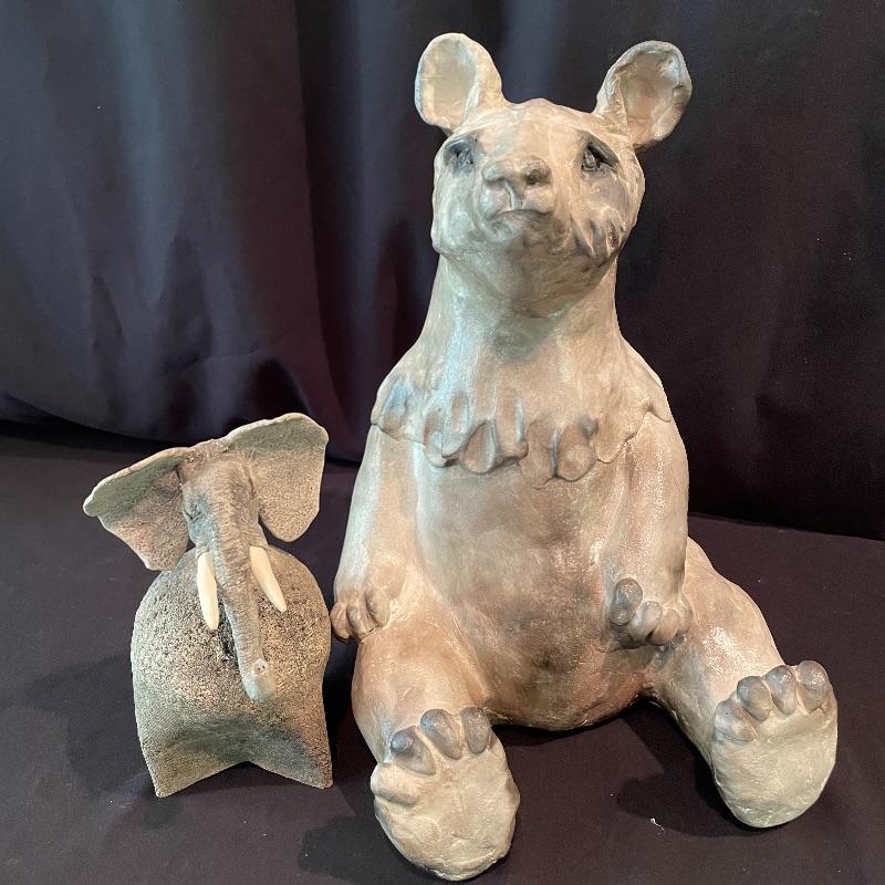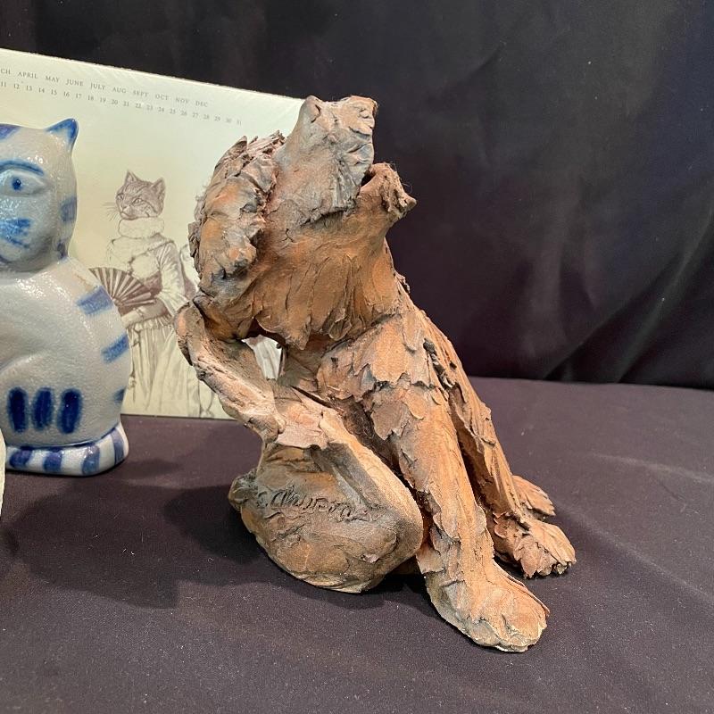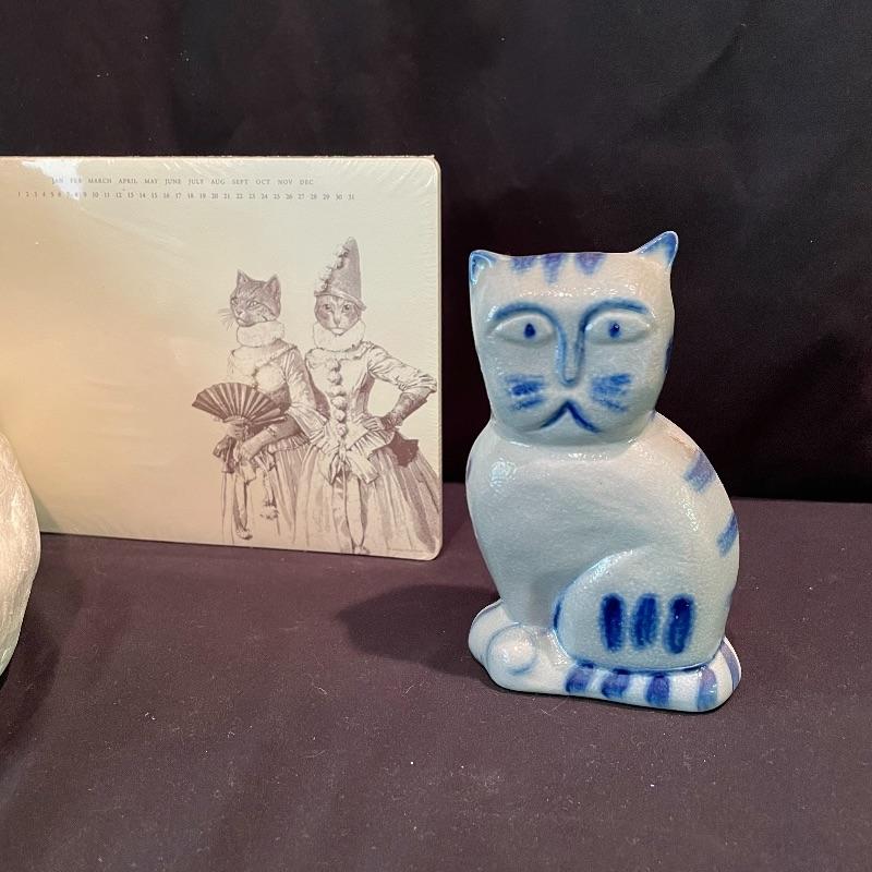 Here’s a ton of personality in this collection. The statuettes all appear to be ceramic. The bear is solid and fairly heavy, sitting nicely at about 14” tall. The unique elephant has some fun textures and a cute snout. Lot also contains a funny mousepad-calendar combo. See images. Local pick up only.