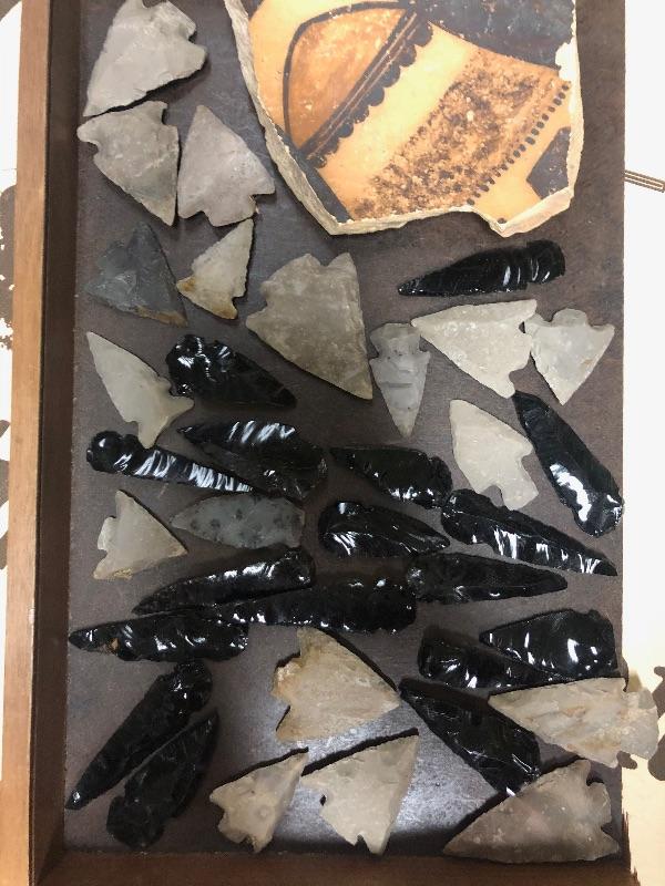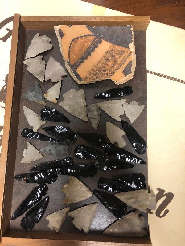 Bundle of arrowheads and piece of pottery: Vintage used condition