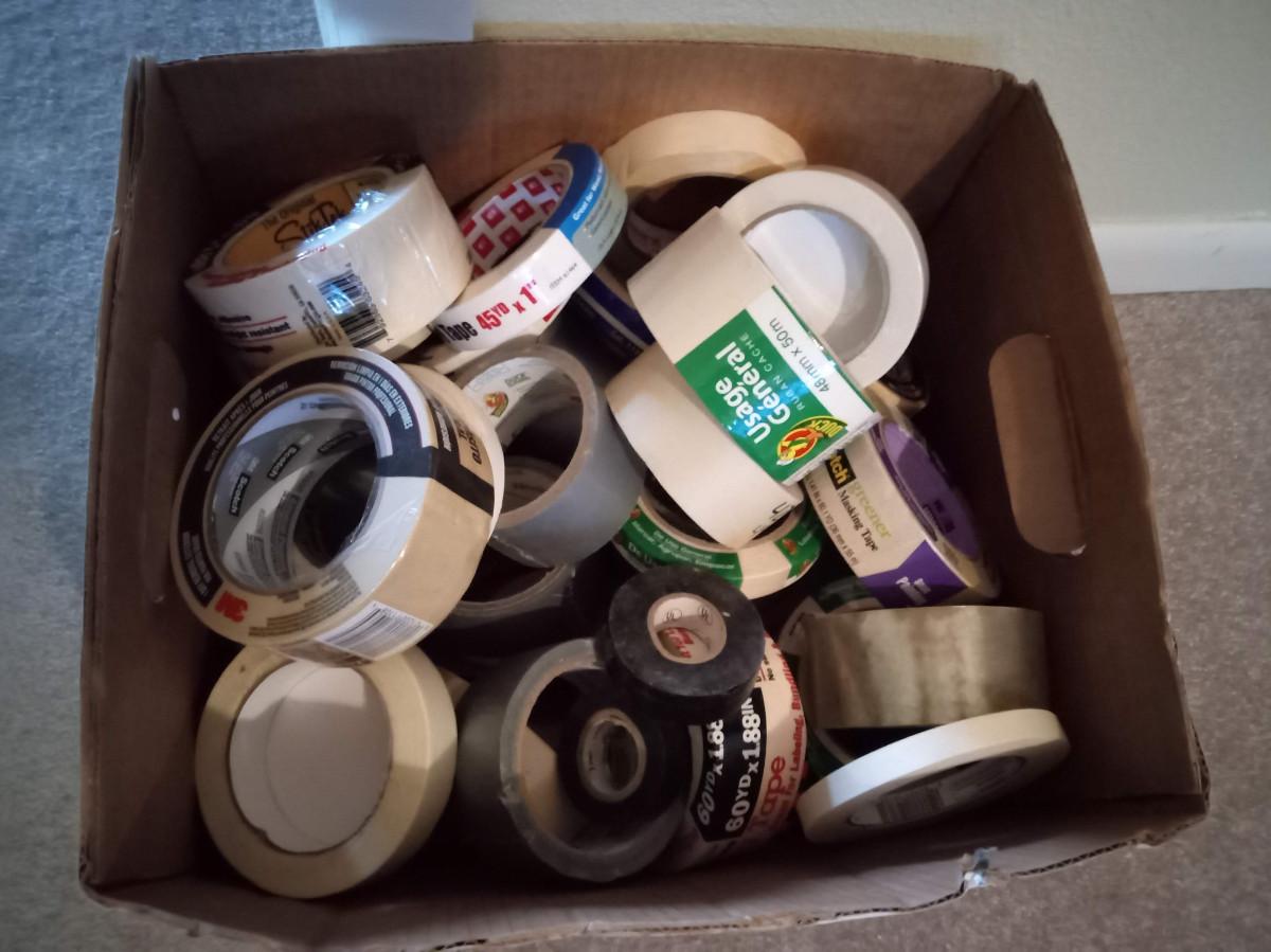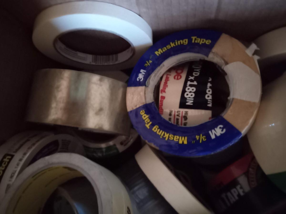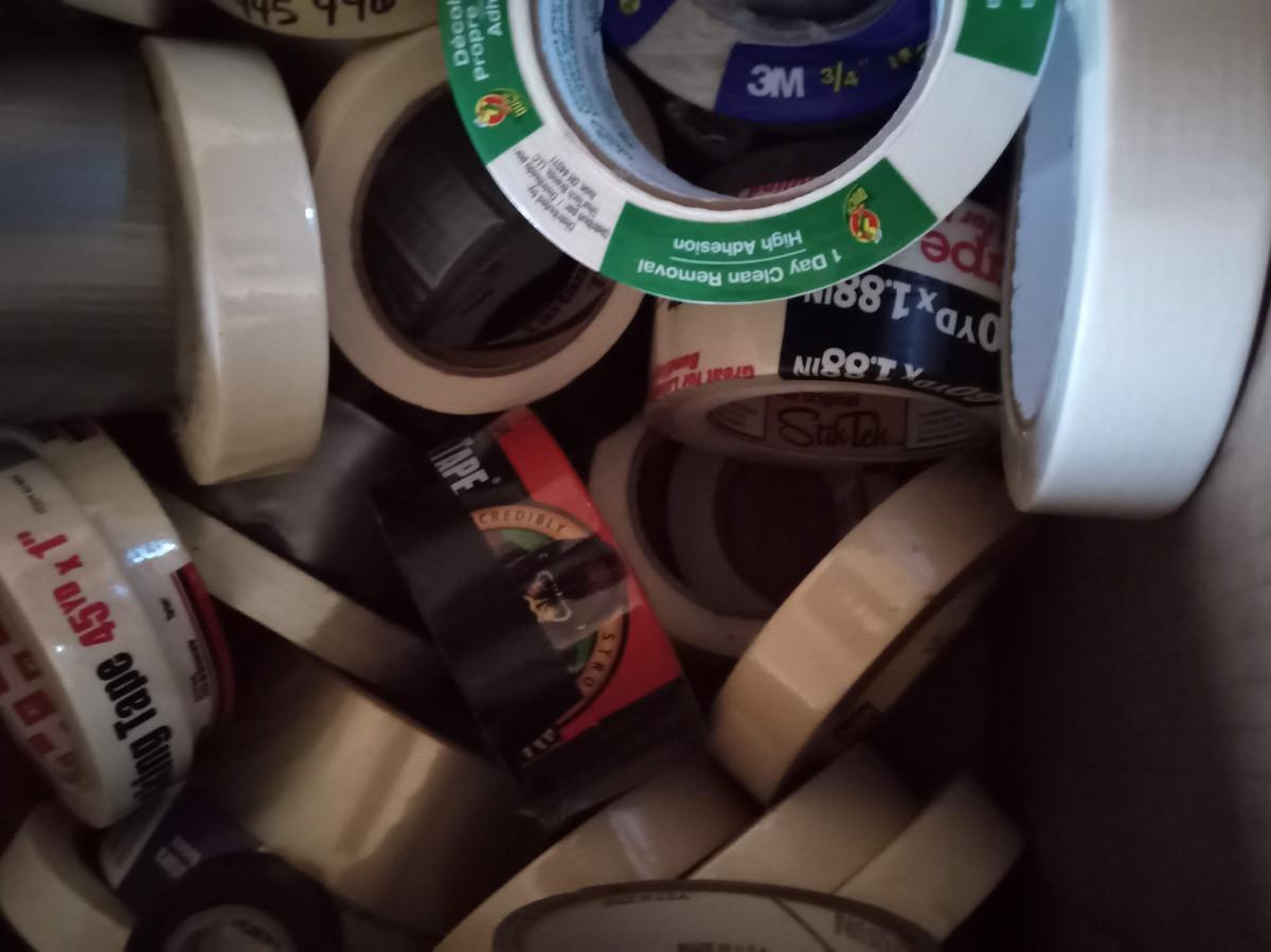 LOT 115 BANKER'S BOX FULL OF VARIOUS TYPES OF TAPE