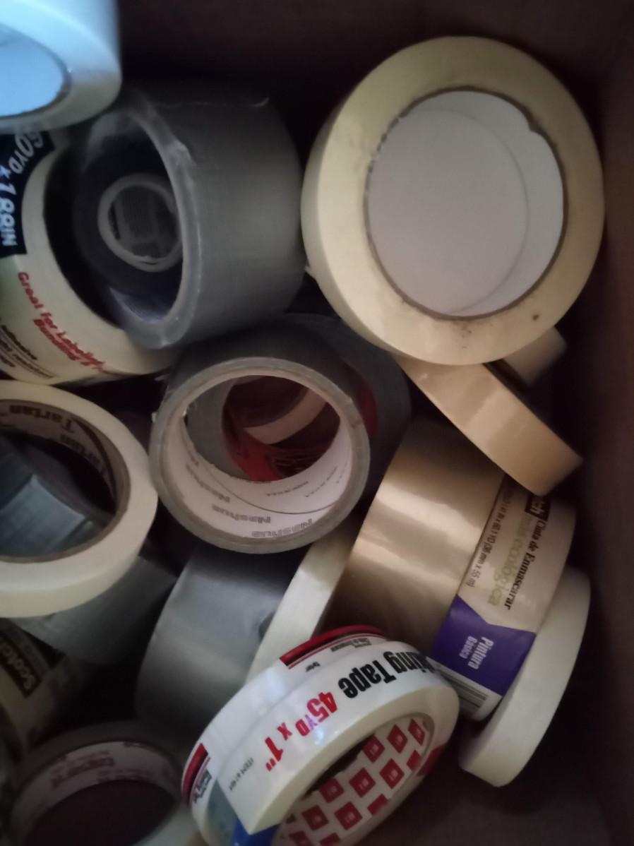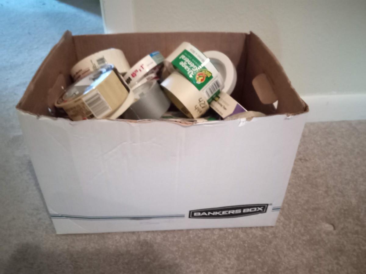 LOT 115  BANKER'S BOX FULL OF VARIOUS TYPES OF TAPE