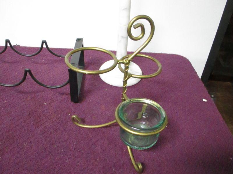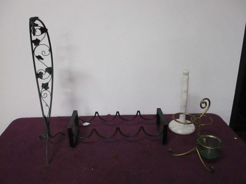 Wine bottle rack, paper towel and holders
