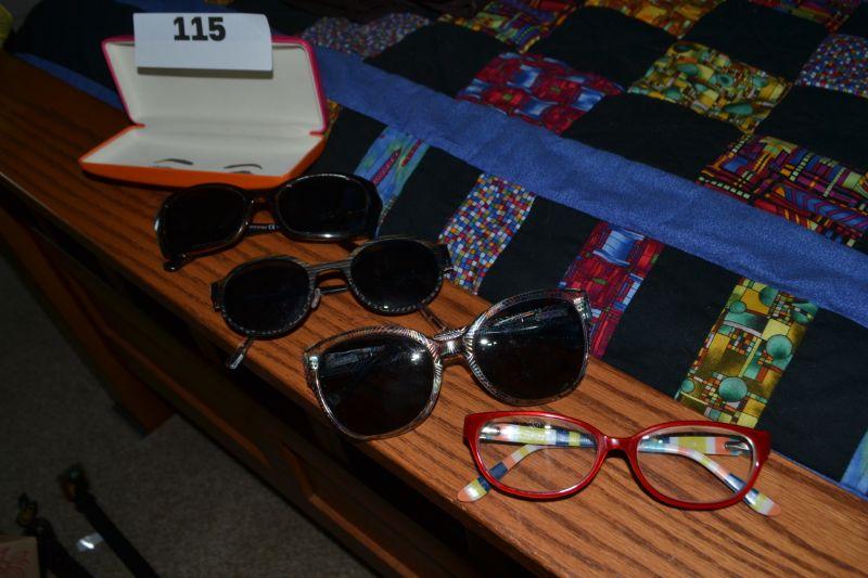 LOT 115. FOUR PAIR OF SUNGLASSES AND ONE SUN GLASS CASE