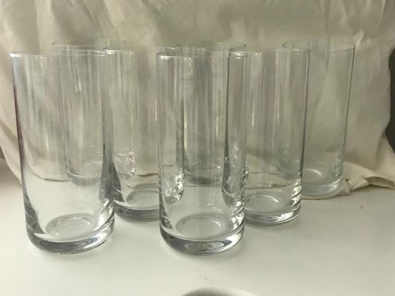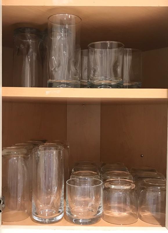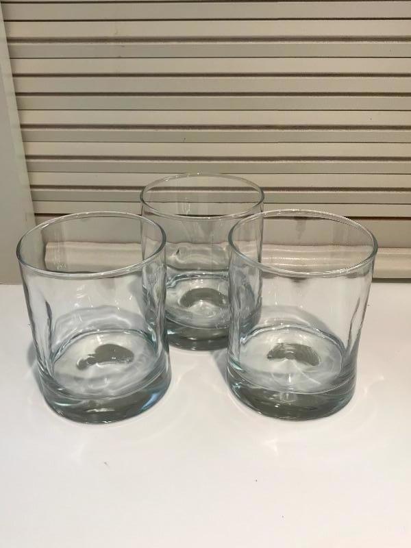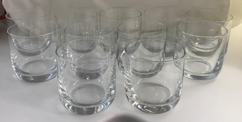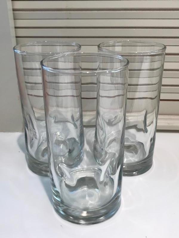 3 thumbprint water glasses 6” tall, 3 small thumbprint glasses 4” tall, 7 water glasses 6” tall and 11 small glasses 3” tall
