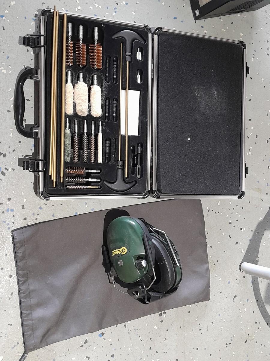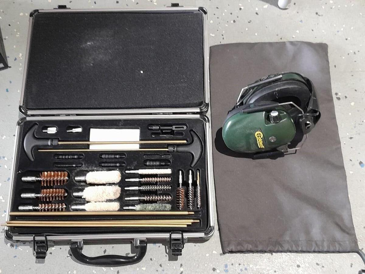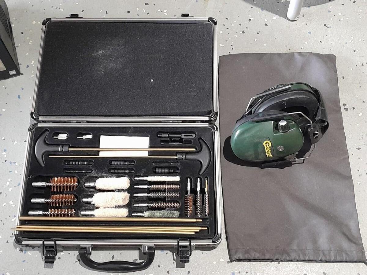 GUN CLEANING KIT IN CASE AND CALDWELL SHOOTING EAR PROTECTION