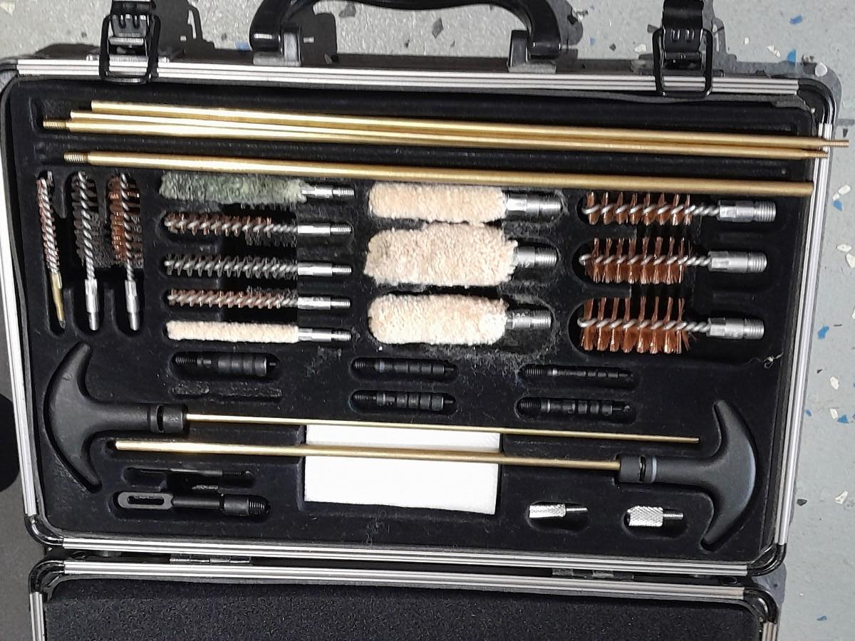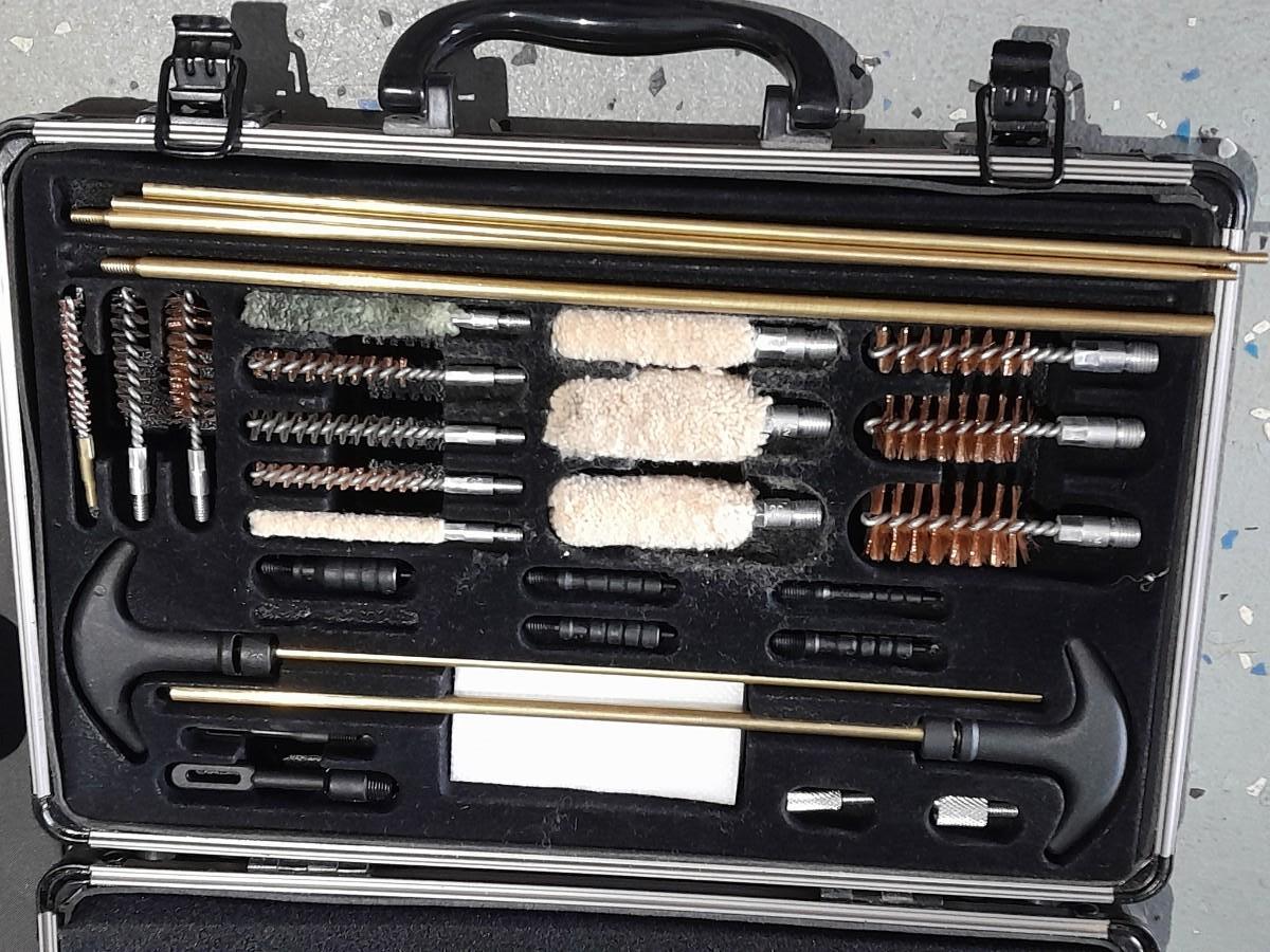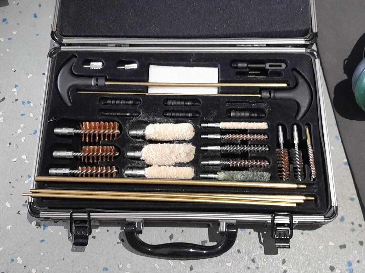 GUN CLEANING KIT IN CASE AND CALDWELL SHOOTING EAR PROTECTION