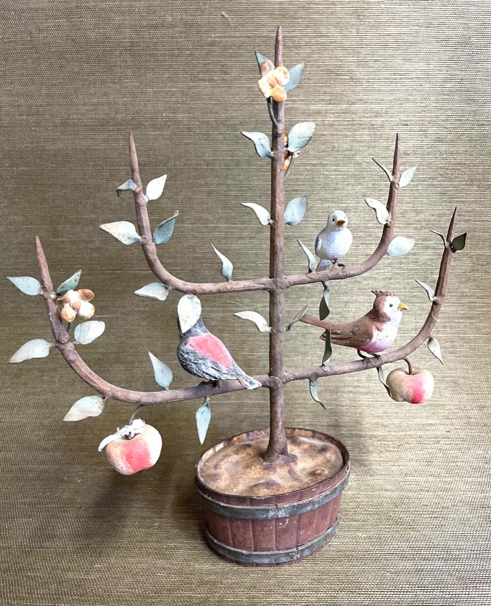 LOT 115 - Italian Toleware, Birds in Tree. (1 of 2). This item is part of the David-Pleydell-Bouverie Estate at Bouverie Ranch in Glen Ellen. This item can be viewed at our Green + Cate Showroom in Sebastopol from July 15th - July 18th between the hours of 9am-5pm. For the benefit of the Bouverie Preserve of Audubon Canyon Ranch.