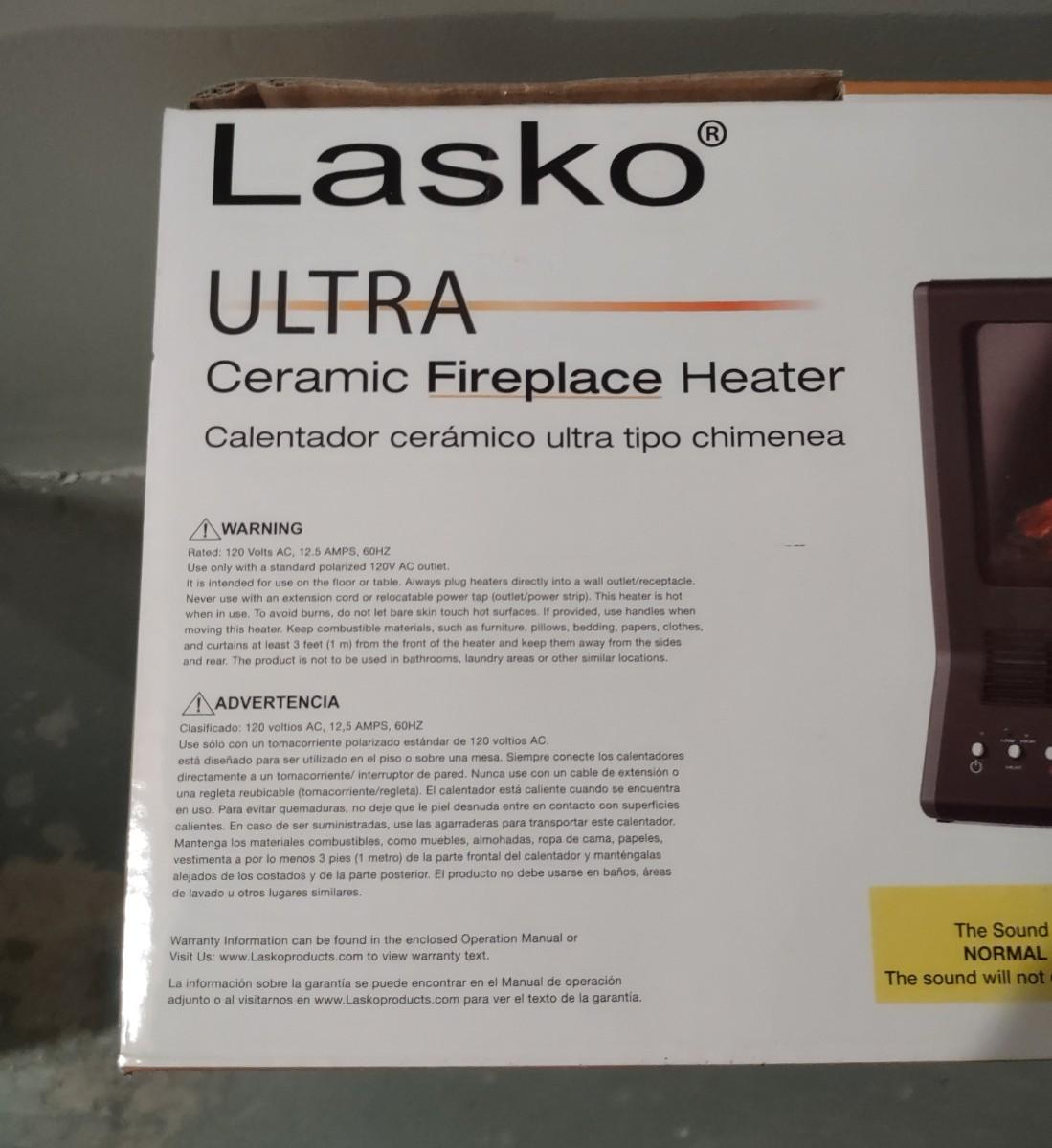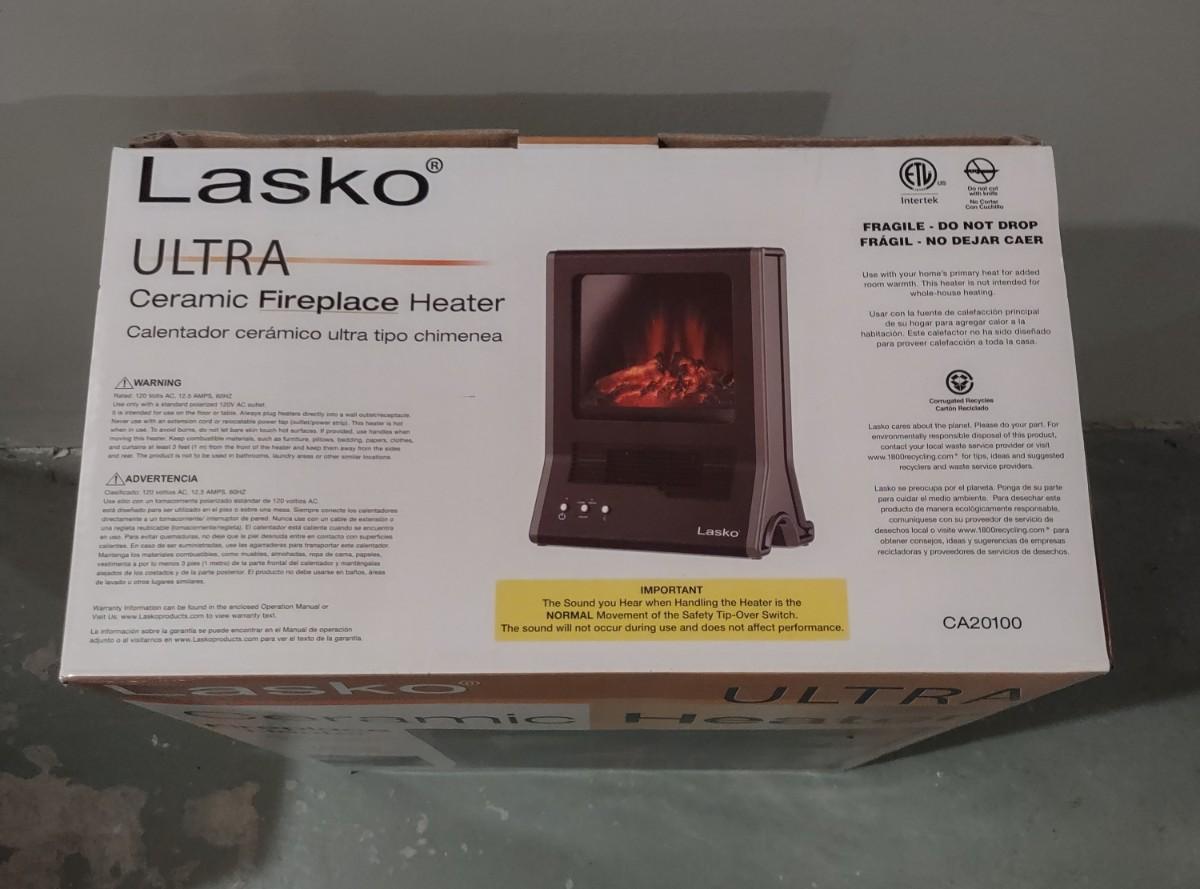 Lasko Ultra Ceramic Fireplace Heater With Box.