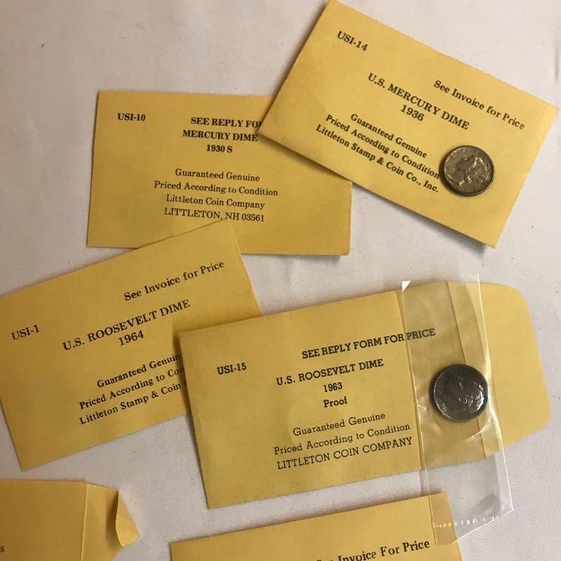 Dimes, Nickels and Pennies from Littleton Coin Company. Ancient Roman pieces also.