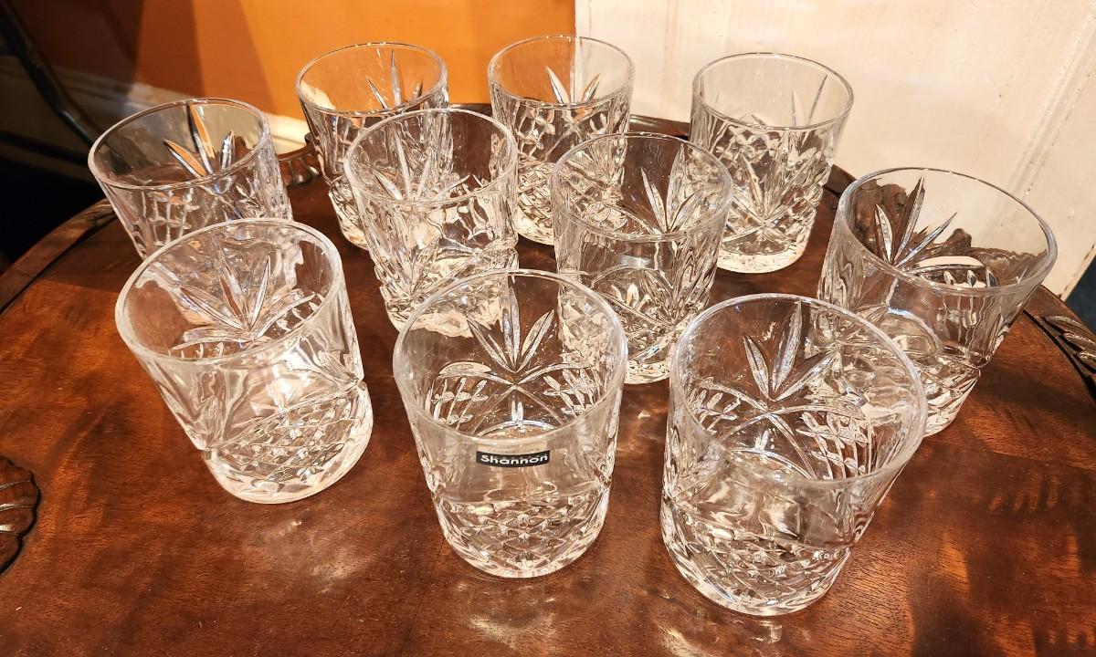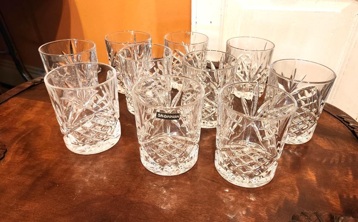 Lot of 10 SHANNON crystal double Old Fashion glasses. Each 3.75" tall, good condition.
