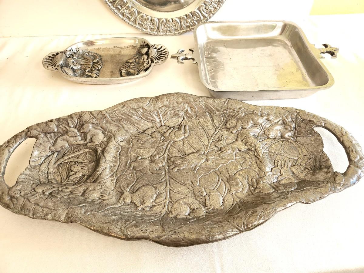 Lot #115 Lot of 4 Pieces - Pewter-look Serving Ware