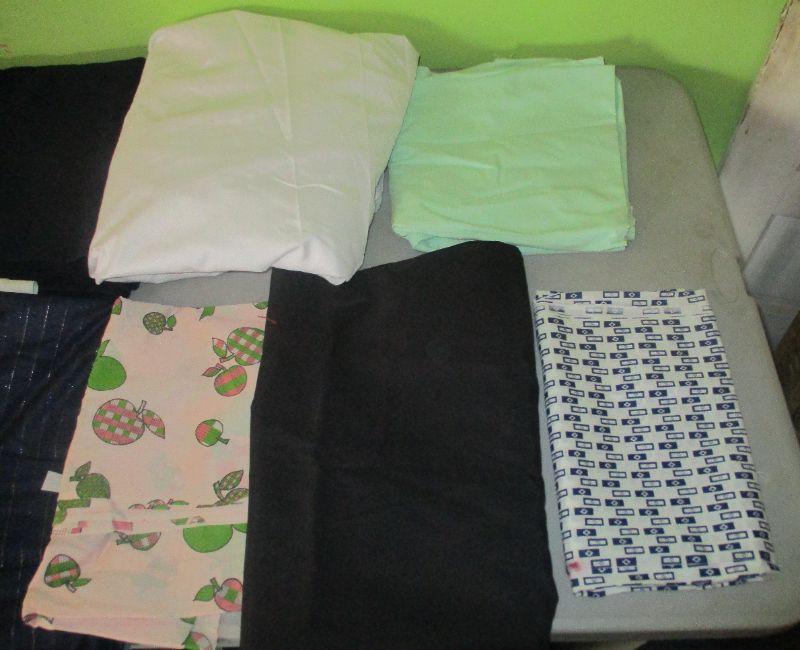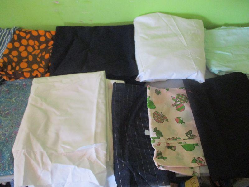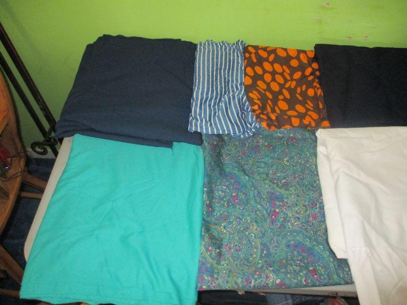 This lot has a variety of types of material - cotton, polyester, satin, nylon, etc. All of it can be used for sewing clothes, most can be used for quilting or home décor projects (like pillows).