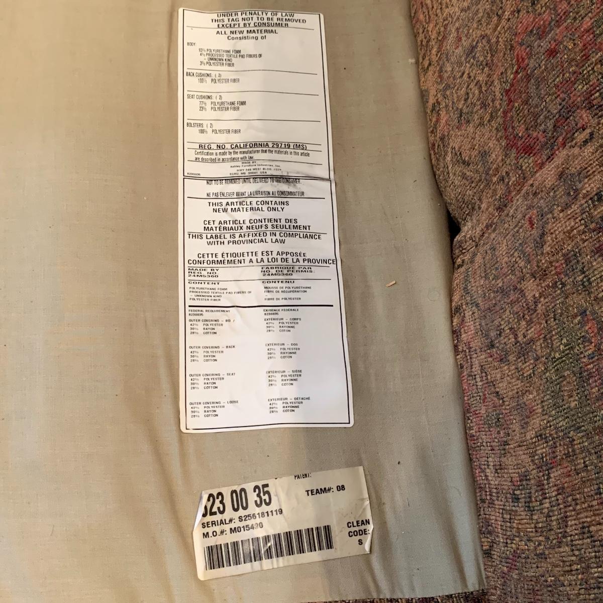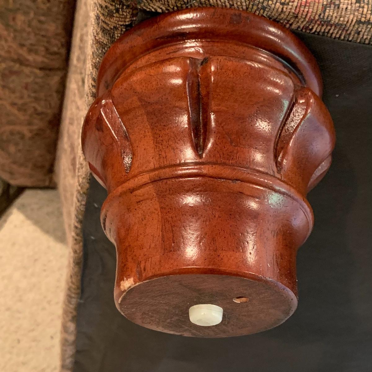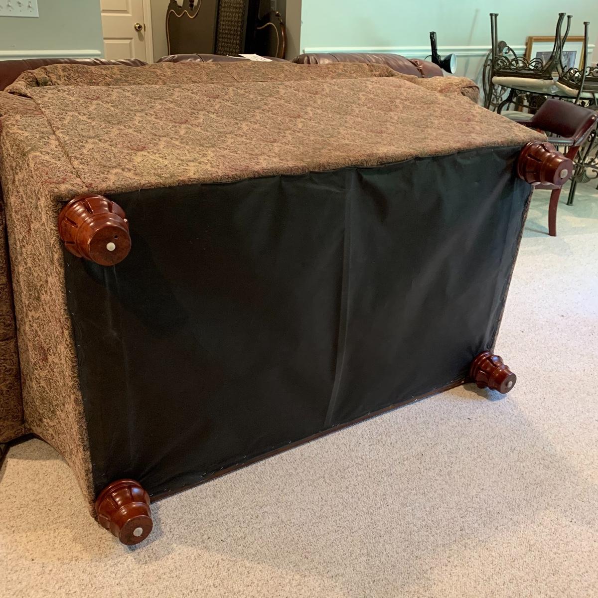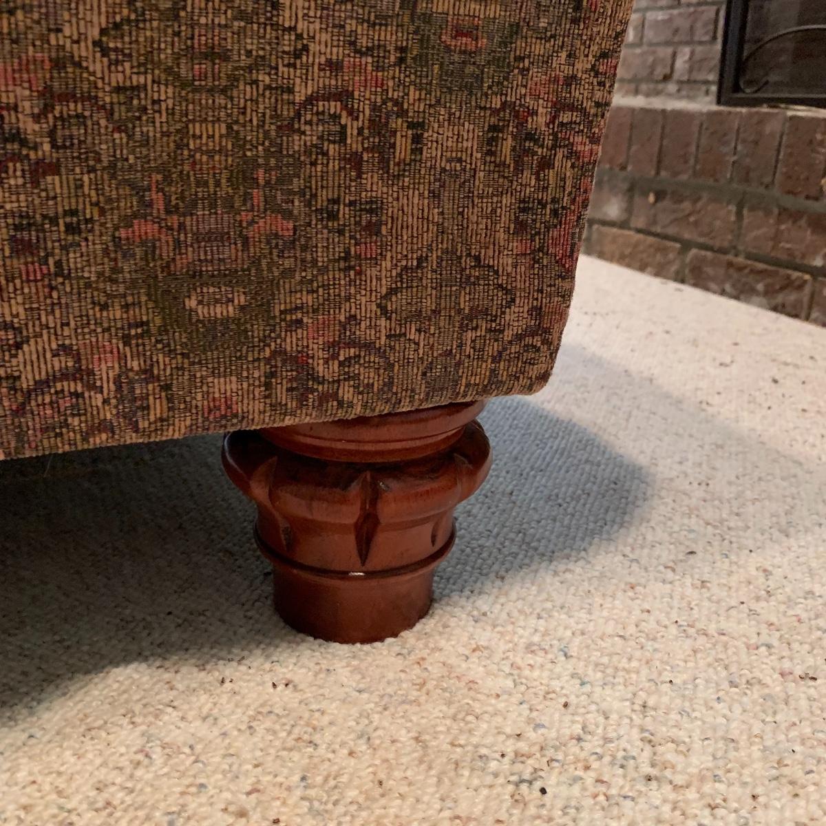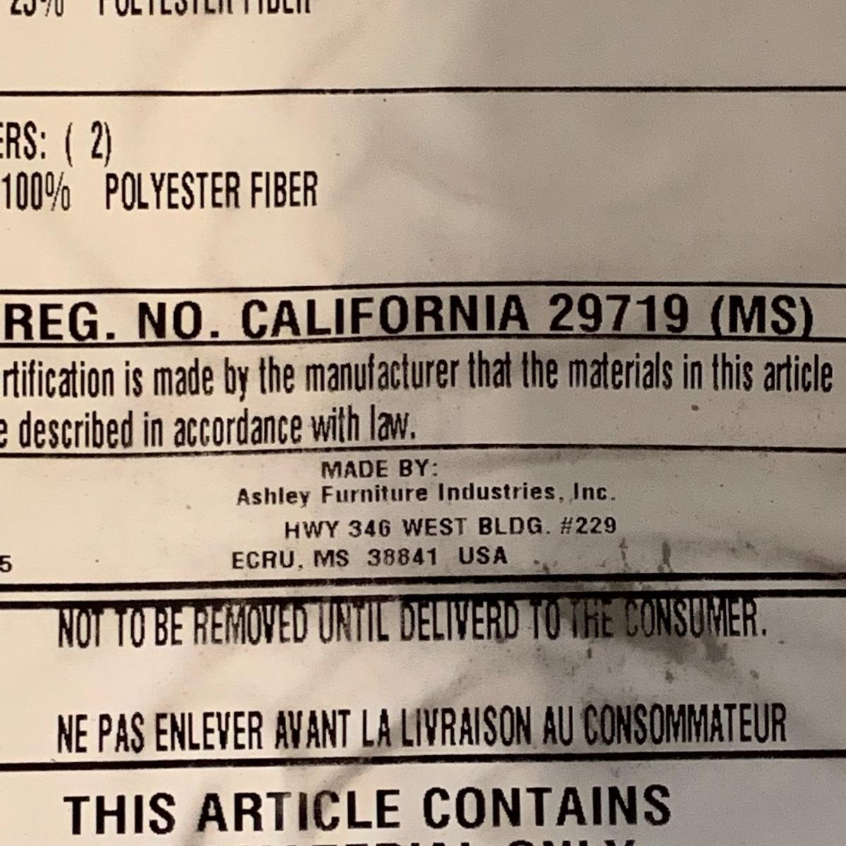 This lovely Ashley Furniture loveseat is really plush and comfortable. It is in excellent condition except for some minor scratches on the wood. It has two really fluffy back cushions and comes with three throw pillows. It measures approximately 76” x 39” x 39”. This loveseat matches the couch and chair found in lots 49 & 50. Bid on all three to get the matching set! Local pickup only. The winning bidder will need to move the loveseat from the basement of a house. Please bring assistance.