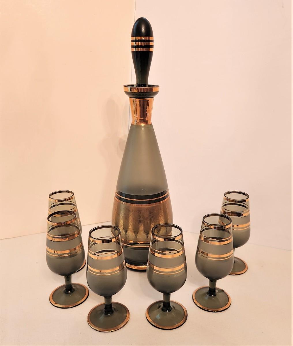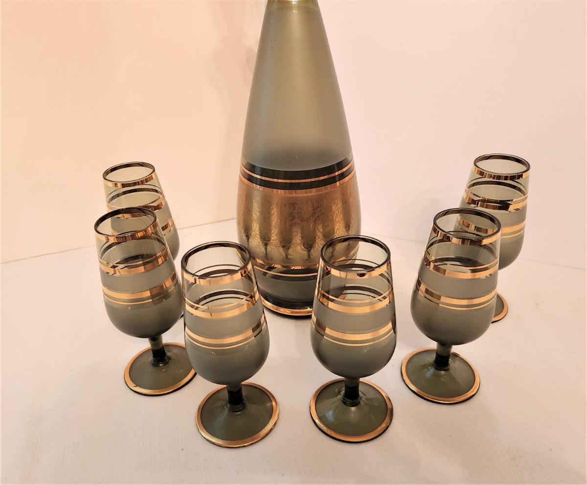 Lot #115  Mid Century Modern Decanter and Glasses