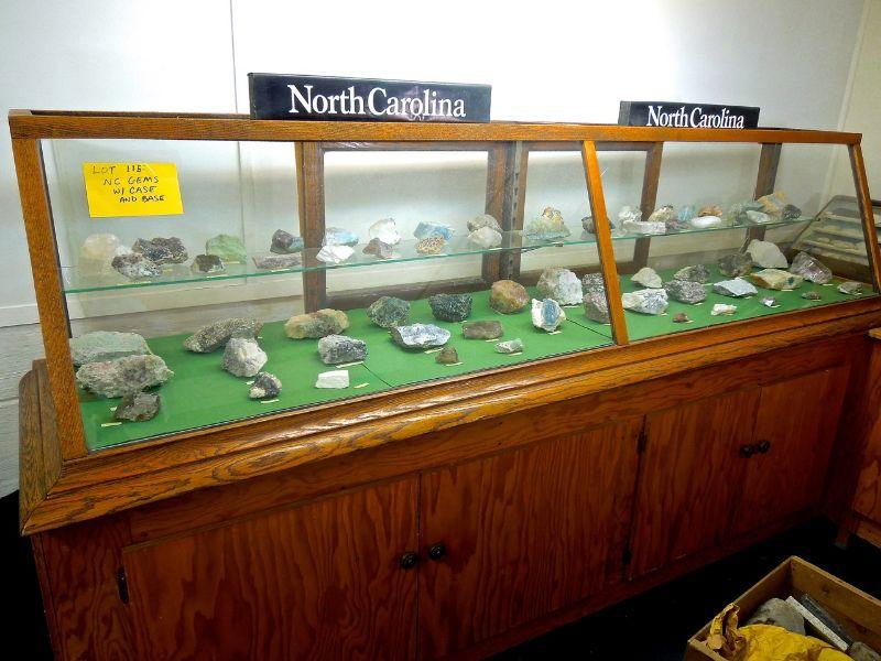 Lot 115: NC Only Rough Gem and Mineral Collection in Display Case