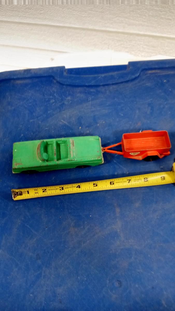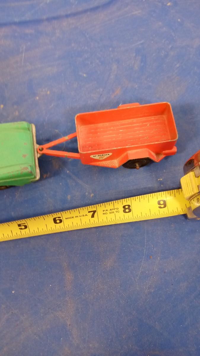 LOT 114 OLD TOOTSIE TOY CAR AND U-HAUL TRAILER