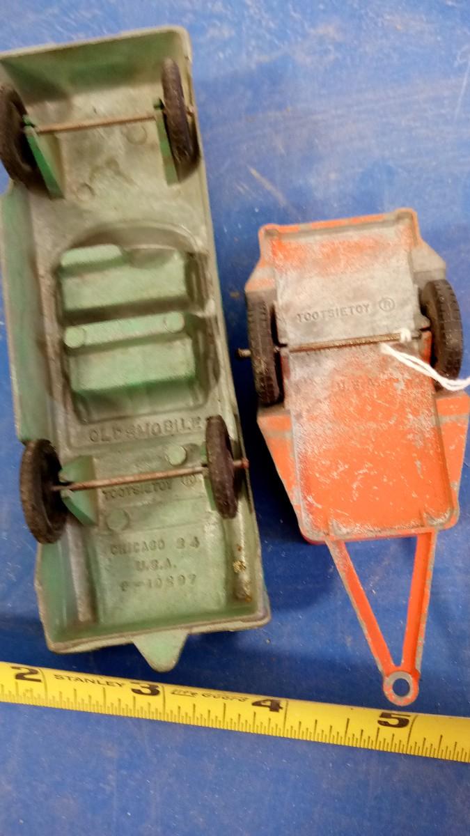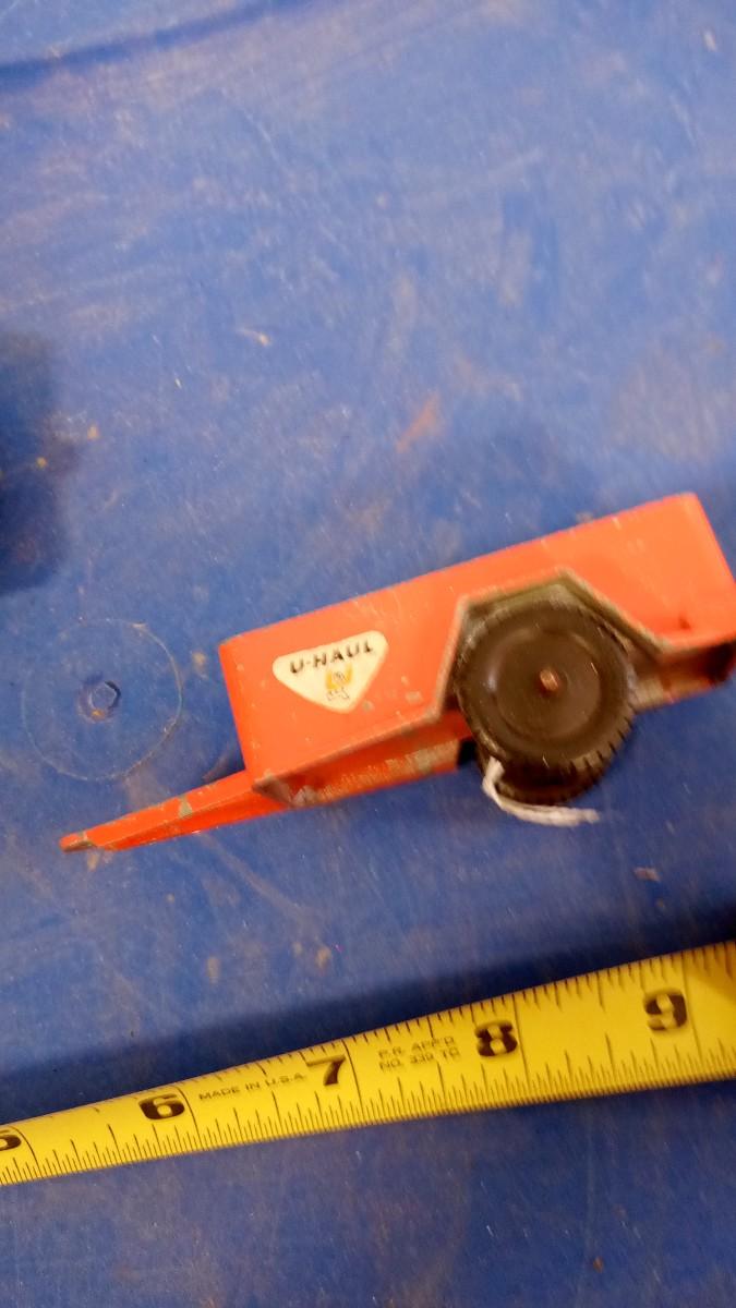 LOT 114  OLD TOOTSIE TOY CAR AND U-HAUL TRAILER