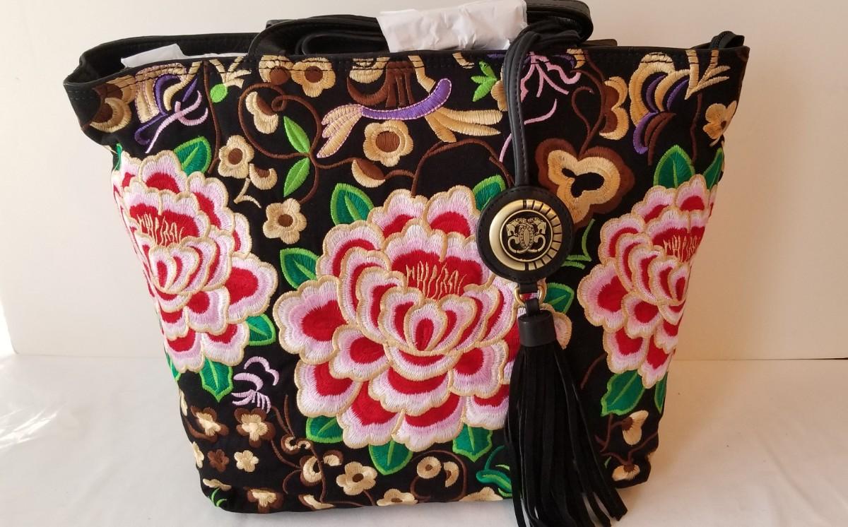 Embroidered Rose handbag (Original by Sharif) - new - never used. 15" x 13"