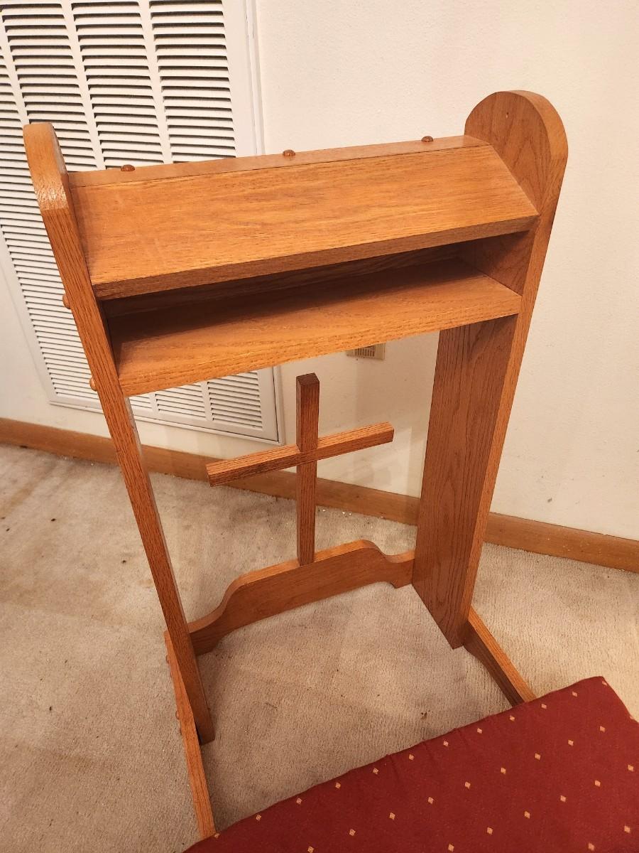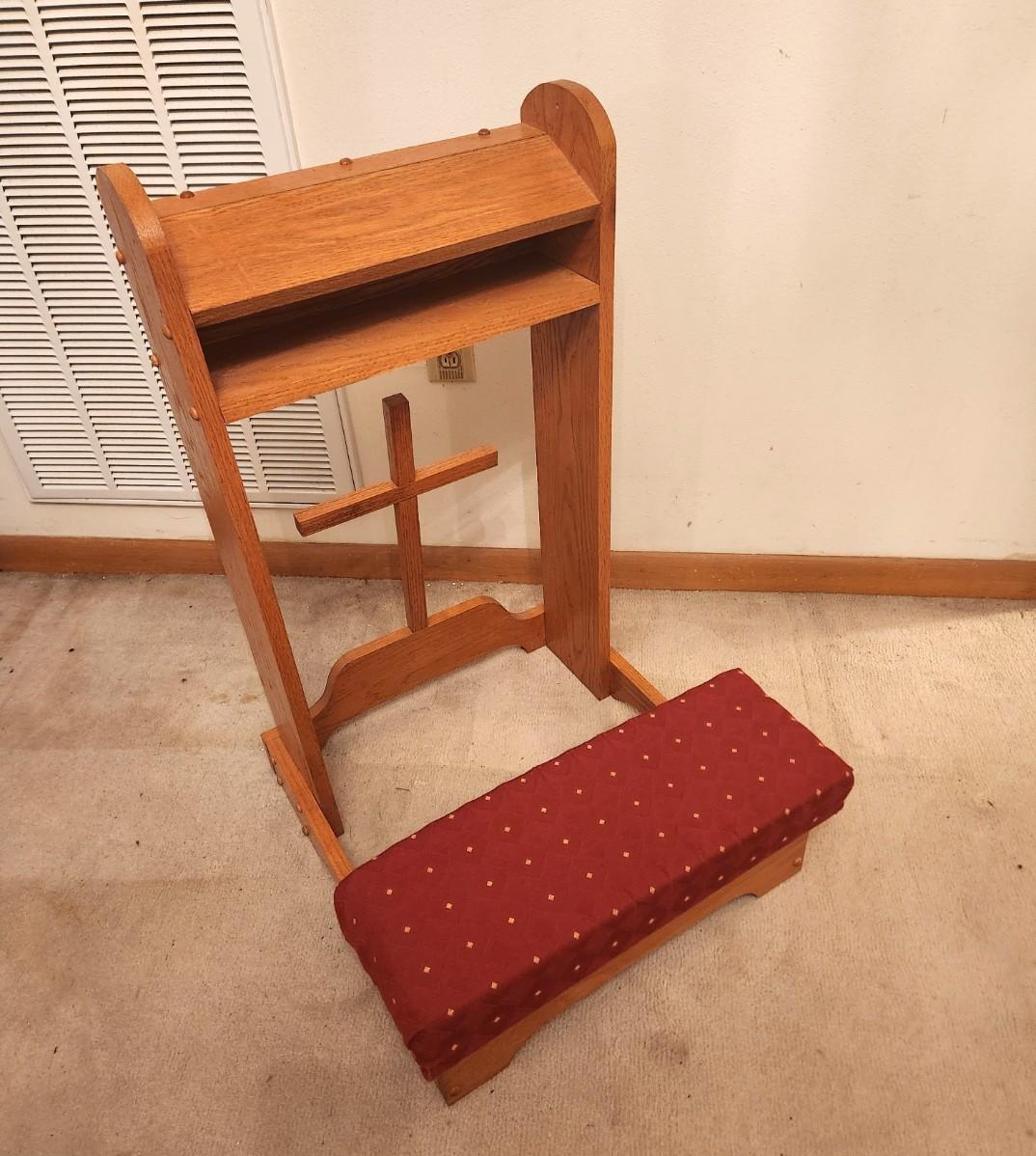 This prie-dieu or kneeler came from the Seelos Center in New Orleans. Great condition, 17.5" across, 32" tall.