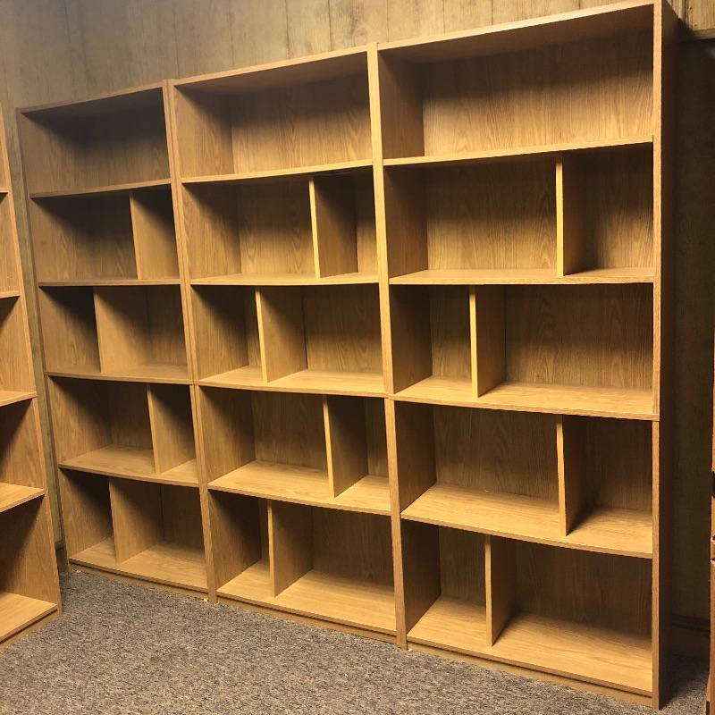 Pressed wood. This lot has so many possibilities. Some cubbies have small extra pieces of wood for structure/stability (pictured). Each unit measures 30”W x 11.75”D x 71.25”H. Local pickup only.