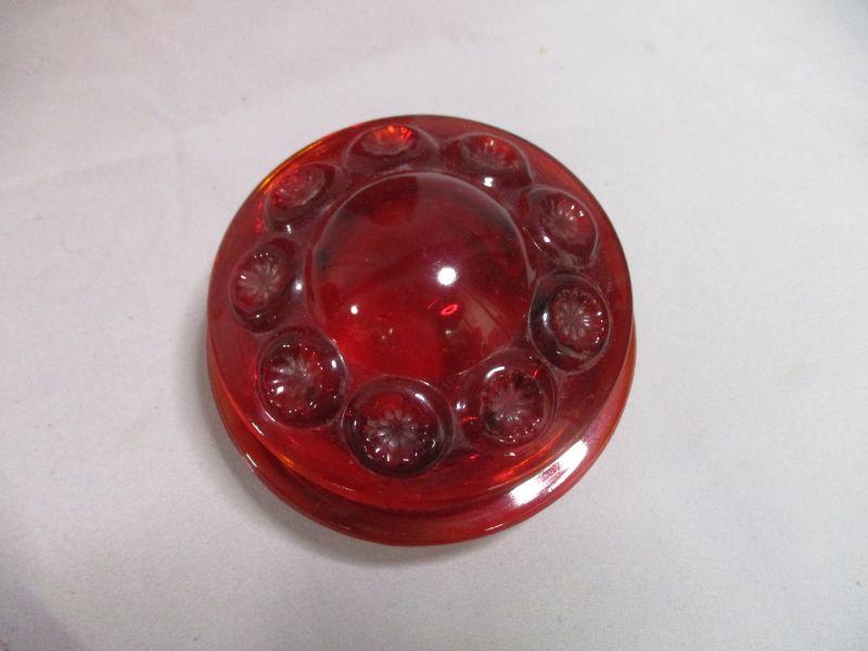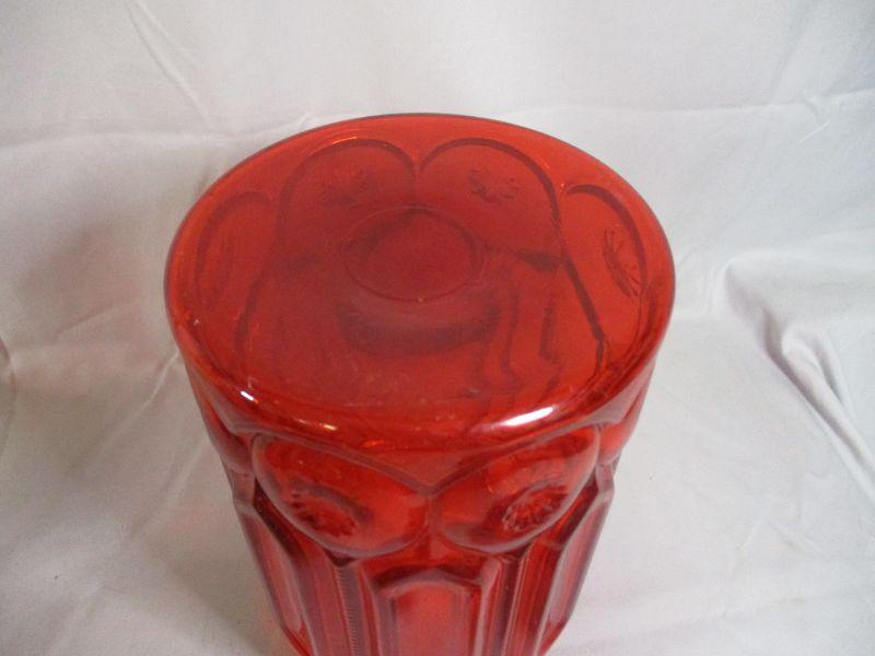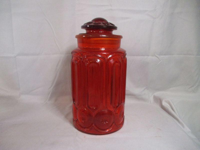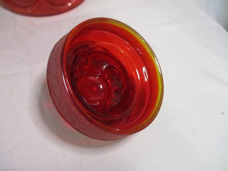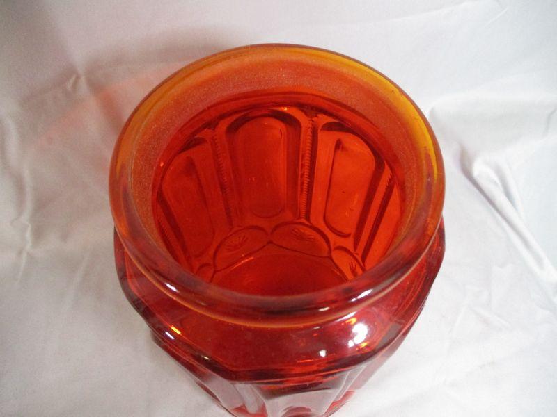 This amberina canister is in excellent condition with no chips or cracks found. It stands about 11.25" tall.
