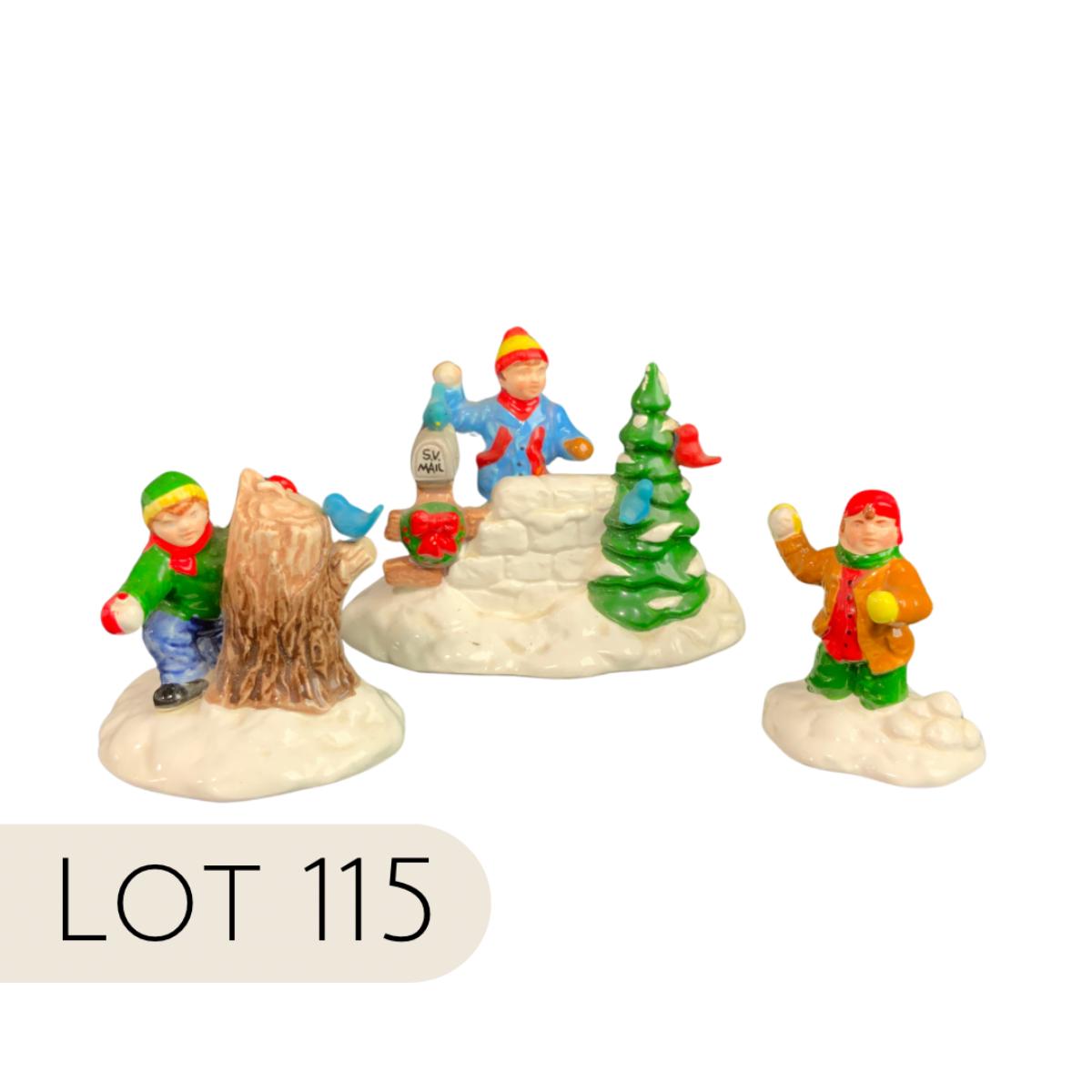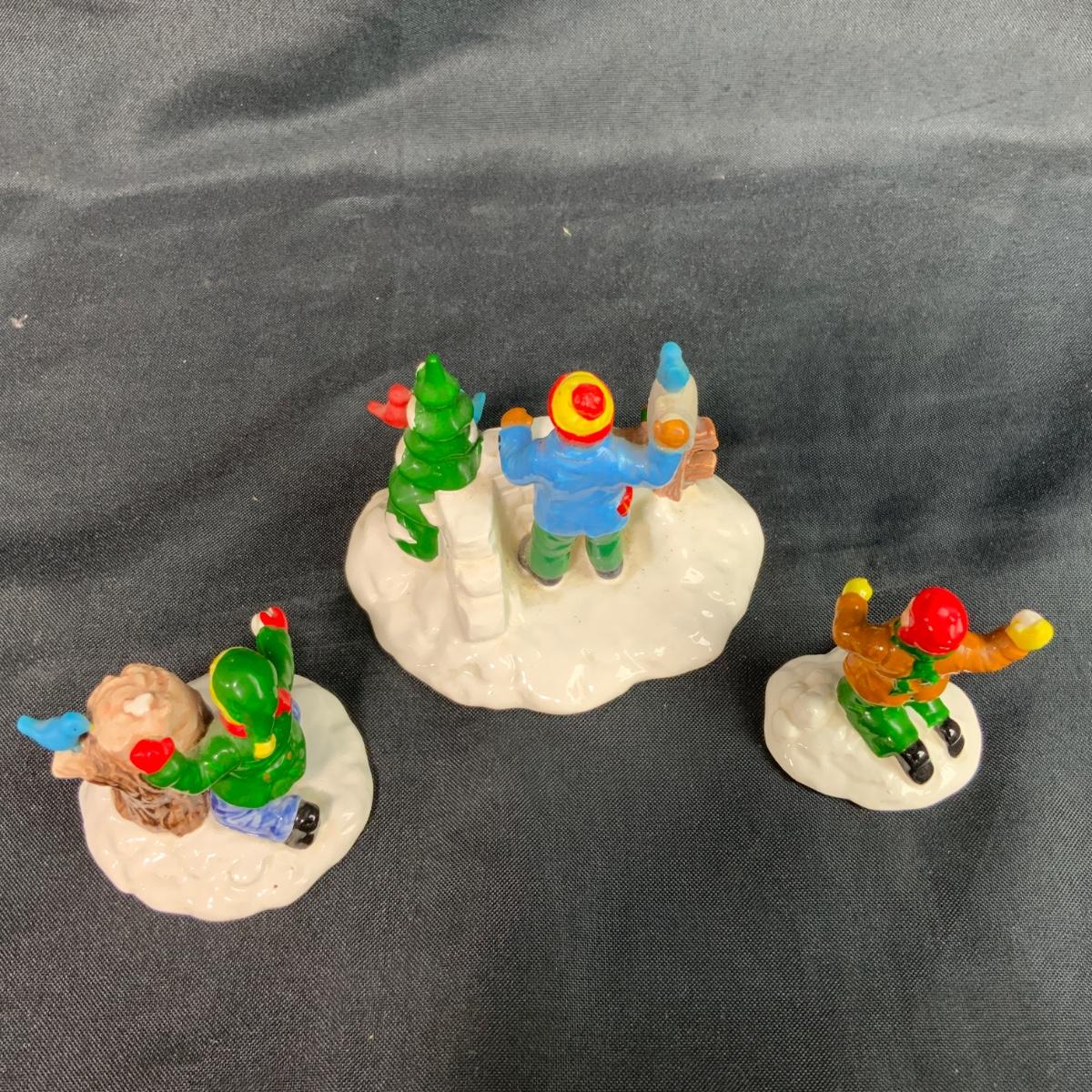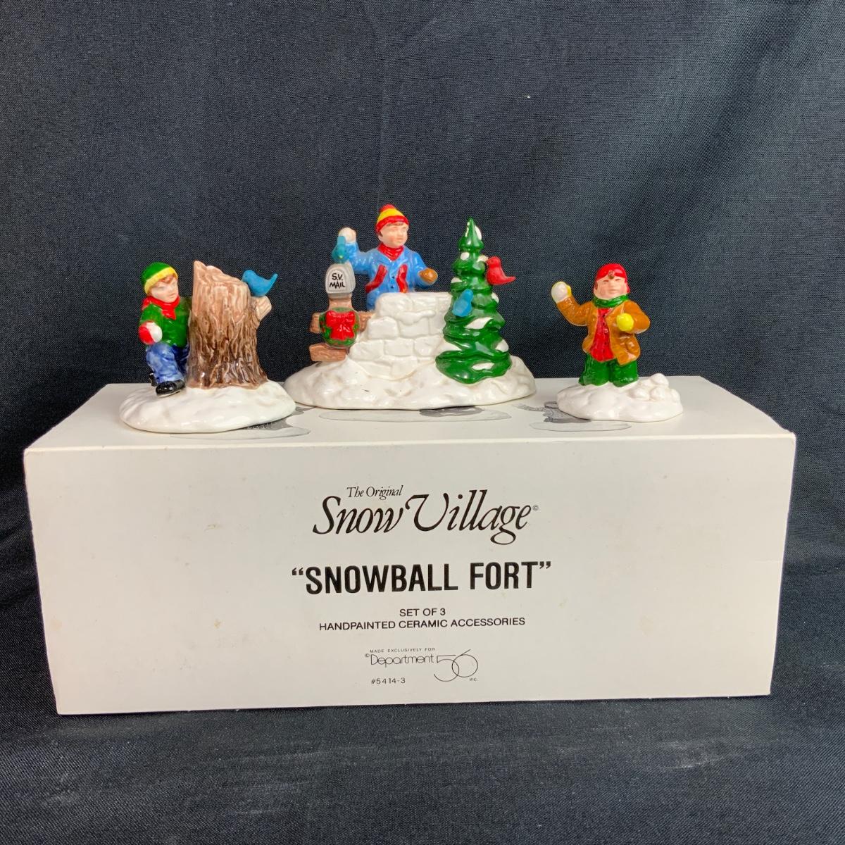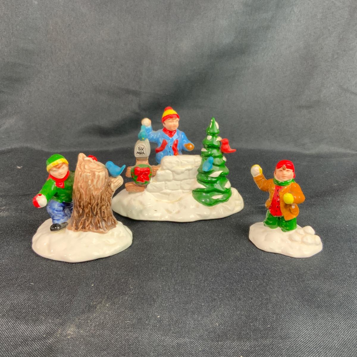 Department 56 Snow Village Snowball Fort figure set of 3. All in good used condition. I have horrible aim. Please see photos for details and condition. ::: Shipping is available on this lot. If you require shipping you must let us know at the close of the auction. We will coordinate with you after the item has been won. Shipping fees will include insurance up to or exceeding the value of all items being mailed. If you have any questions regarding this lot please contact the auctioneer either via this website, by direct email or by phone. PICK UP TIMES and other important information can be found in the TERMS and DESCRIPTION of the auction. Please take a look for pertinent information. Thanks! Any condition statement is given as a courtesy to a client, is an opinion, and should not be treated as a statement of fact. Reference to condition written, oral or within a condition report shall not be regarded as a full account of condition and may not include all defects, alterations, or restorations. Absence of a condition report does not imply a lot is flawless or lacking imperfections or damage. Katherine’s Auction & Appraisal Service shall have no responsibility for any error or omission. Returns shall not be accepted on the basis of condition.