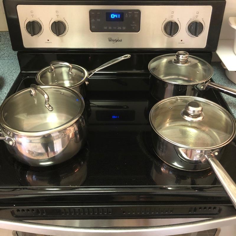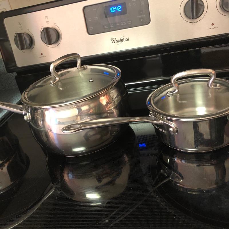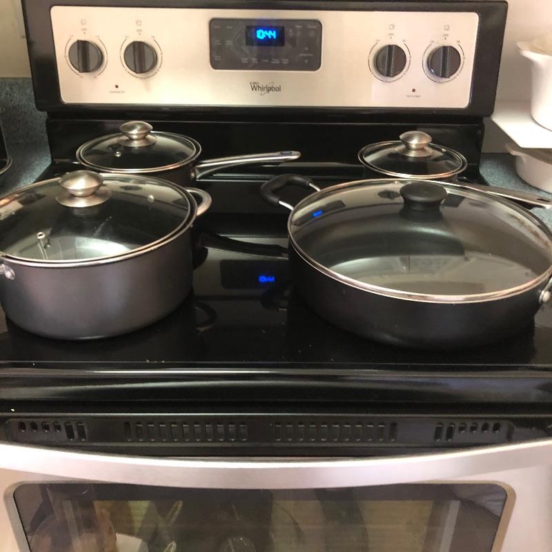 A great assortment of pots and pans here and a Lodge cast iron skillet. See images for manufacturers’ information of these pots and pans.