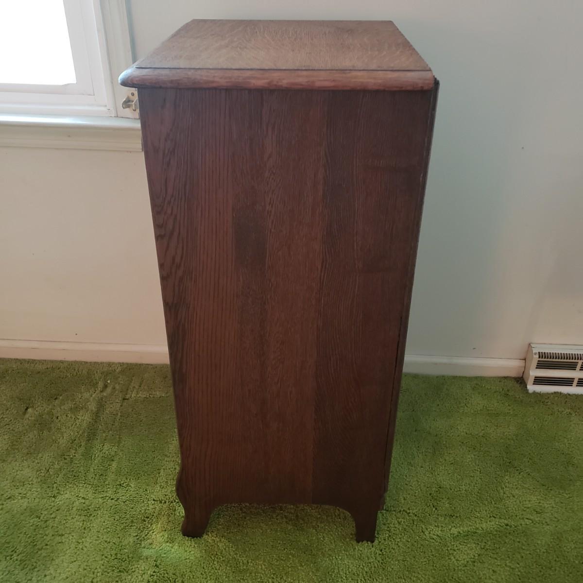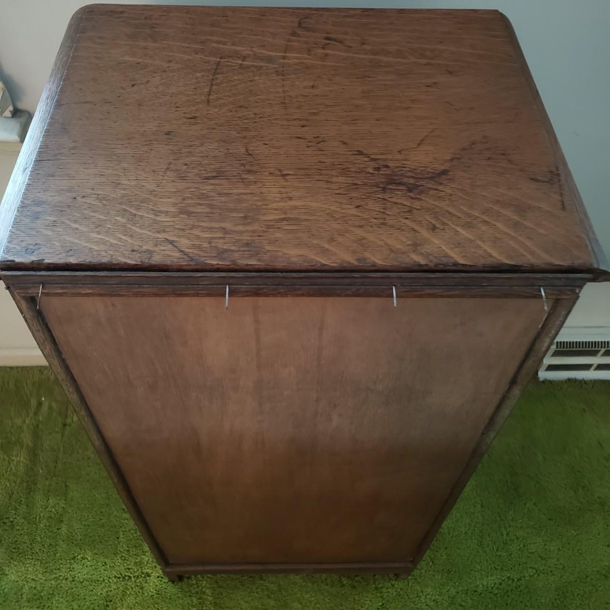 34 1/2"H 18 1/2"W 16"D. Please see all pictures as they are the best representation of the items. The pictures show condition, measurements if taken, and what is included in the lot. Due to the large amount that we photograph and the time frame, we are not always able to take measurements. All items unless noted, are pre-owned and have been used. If you purchased furniture, you must bring help. We do not allow one person to carry large furniture out on their own. Bring help, tools and a truck for the safety of our client’s homes, and your personal safety. Any damages that result to the property including walls, and floors due to moving of the furniture will be charged to the buyer. Company policy. Thank you.