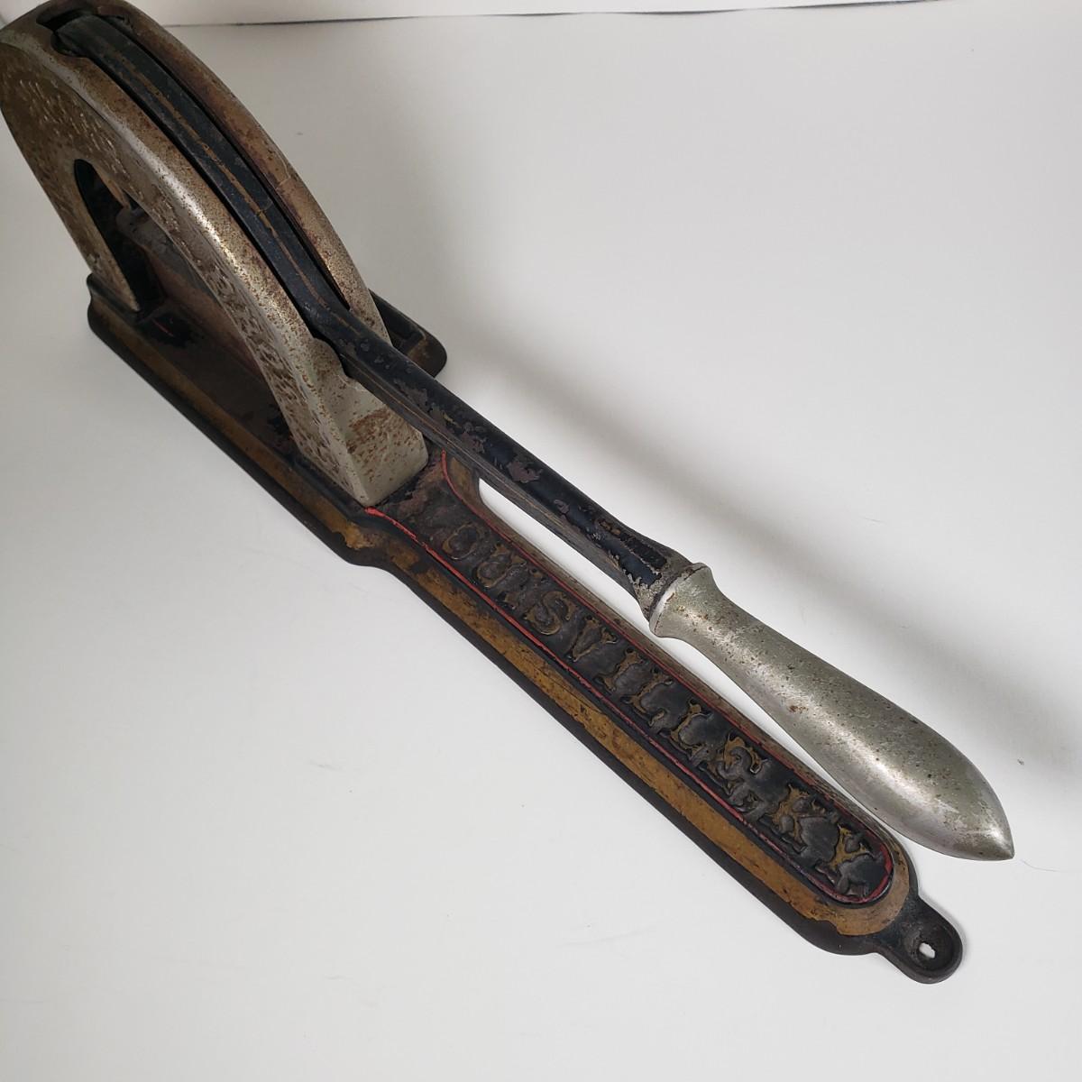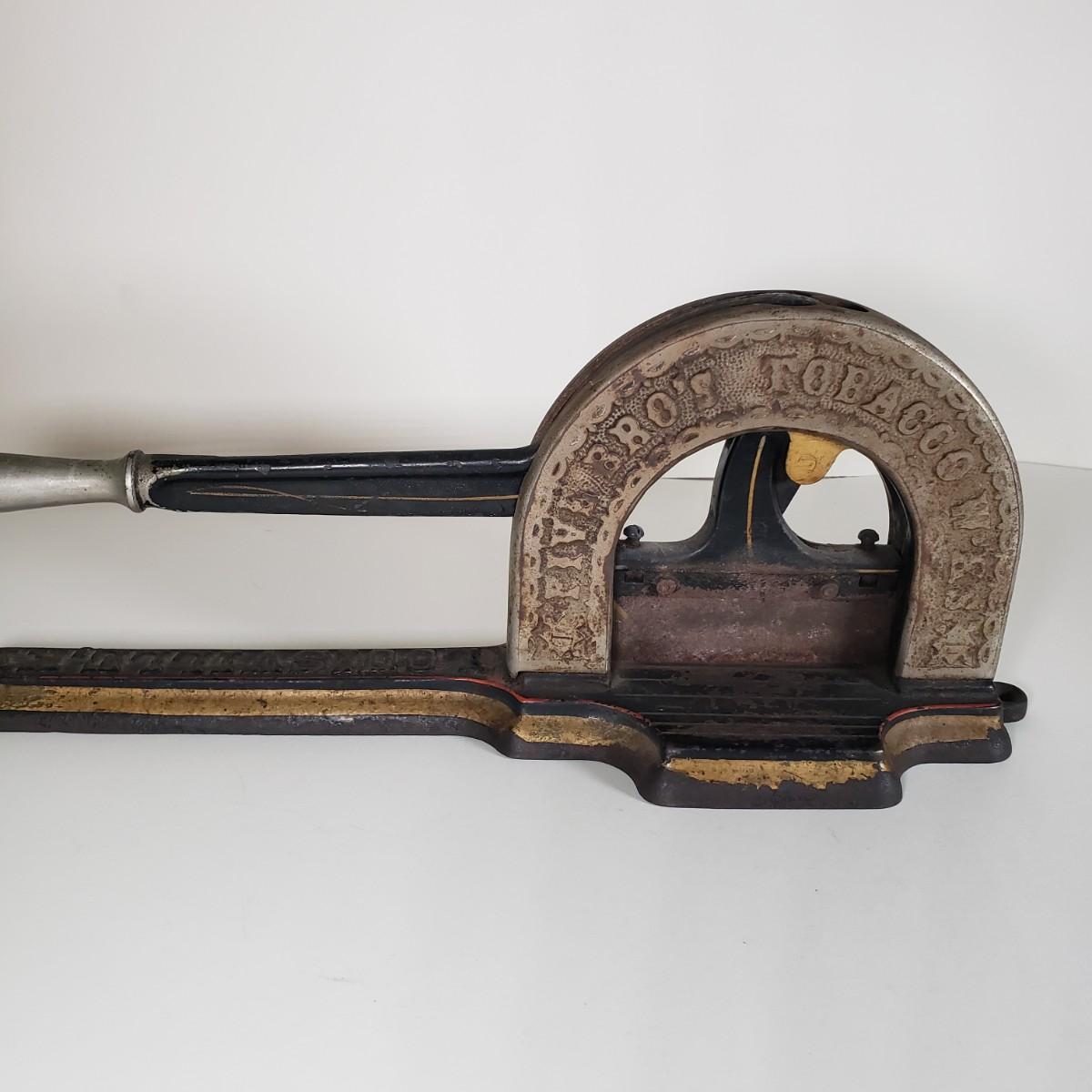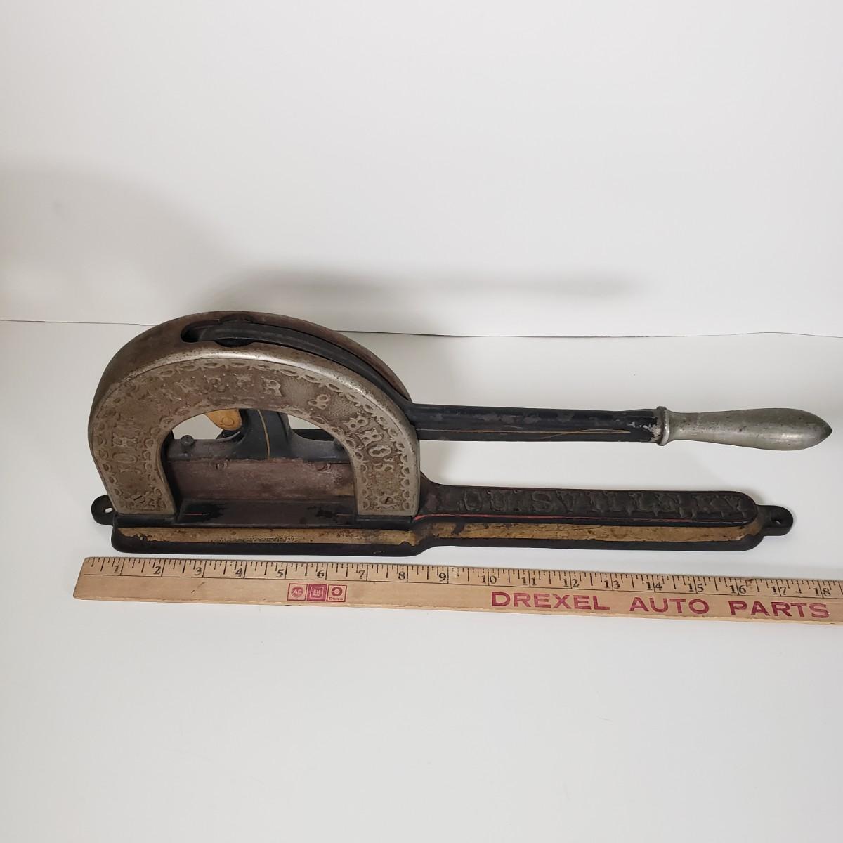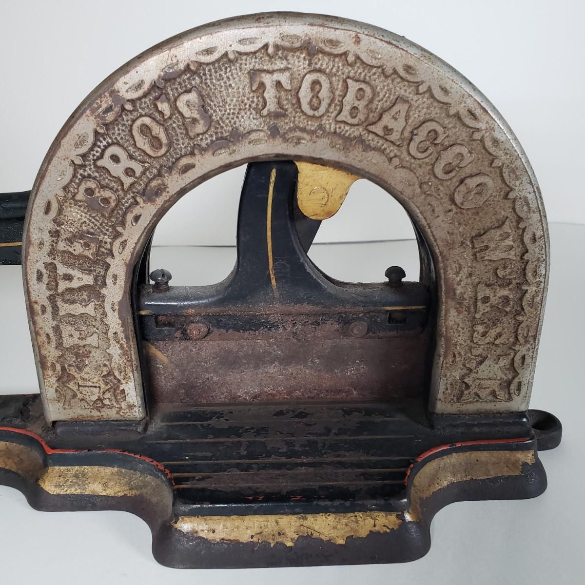 LOT 13X: Antique Cast Iron Tobacco Cutter; Five Bros Tobacco John Finzer Louisville