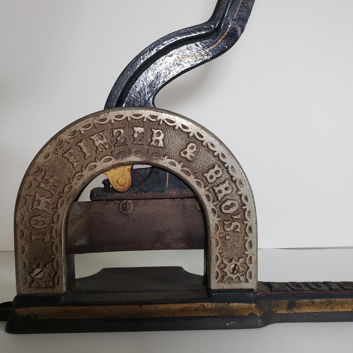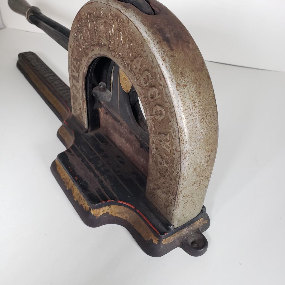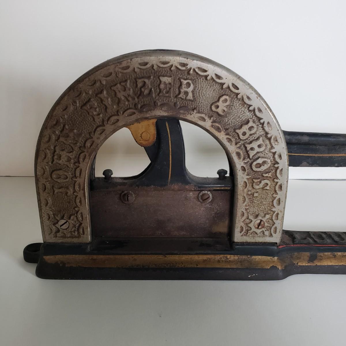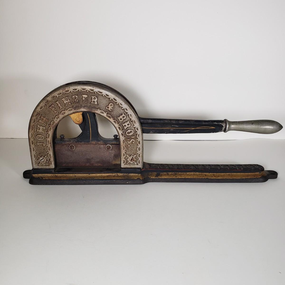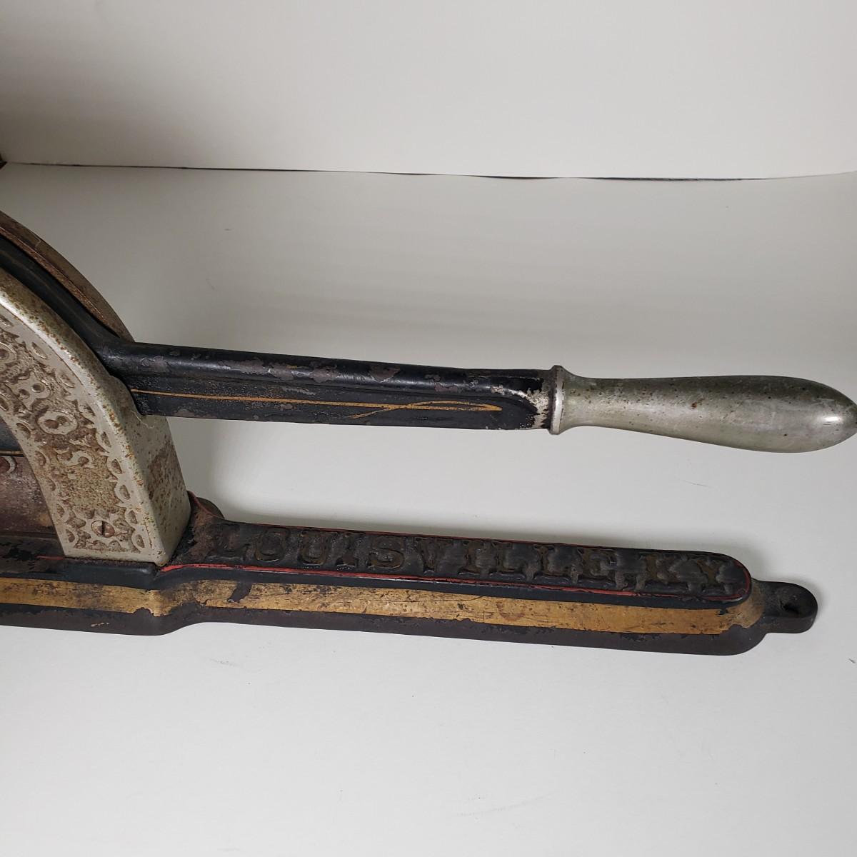 LOT 13X: Antique Cast Iron Tobacco Cutter; Five Bros Tobacco John Finzer Louisville