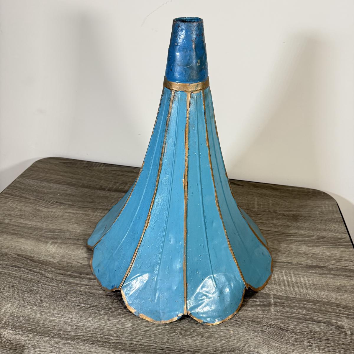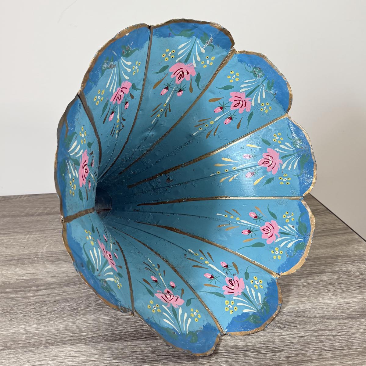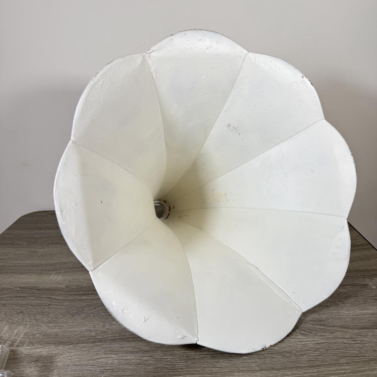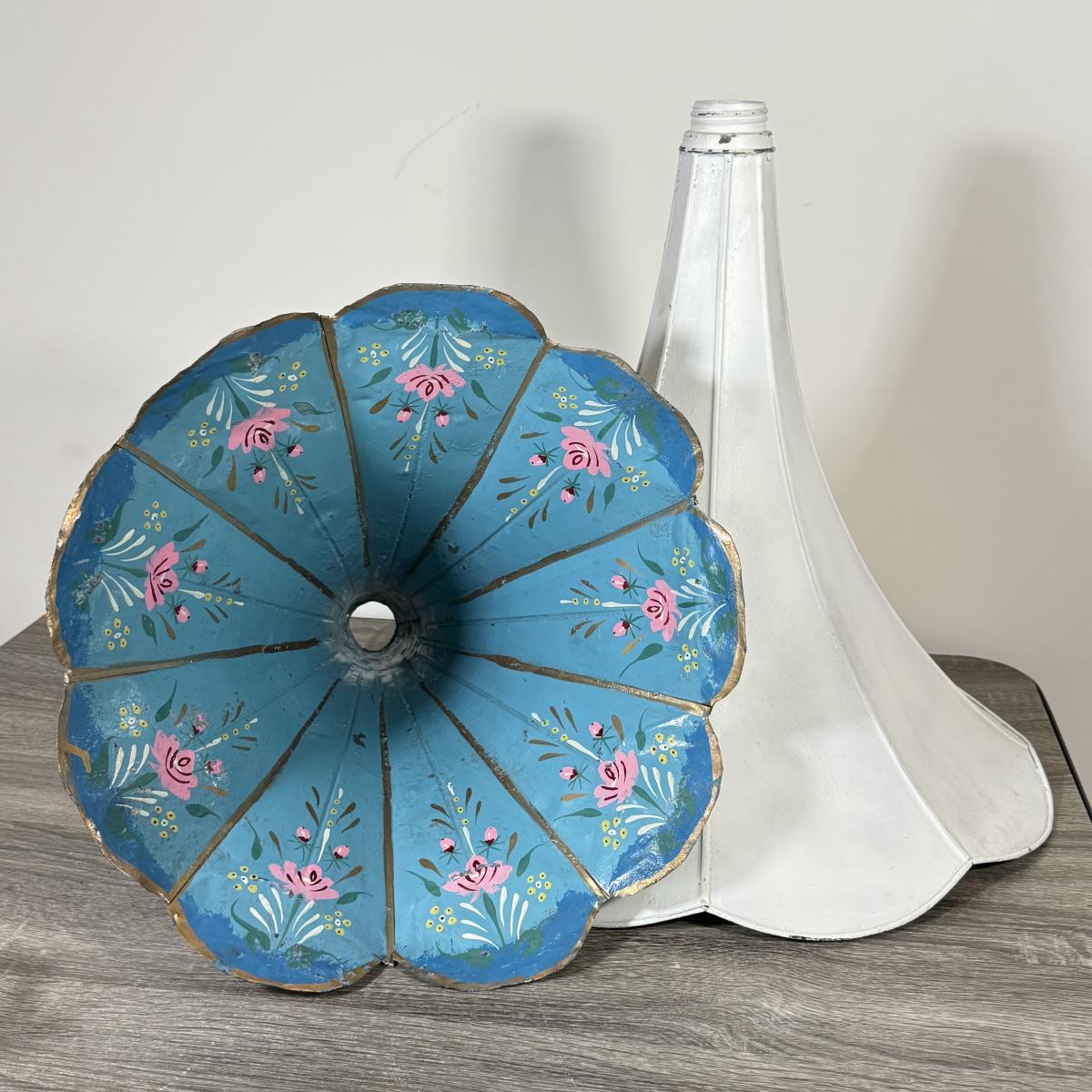 LOT 33H: Beautiful Antique Hand Painted Blue Flower Petal Amplifying Horn w/ White Flower Phonograph/Gramophone Horn
